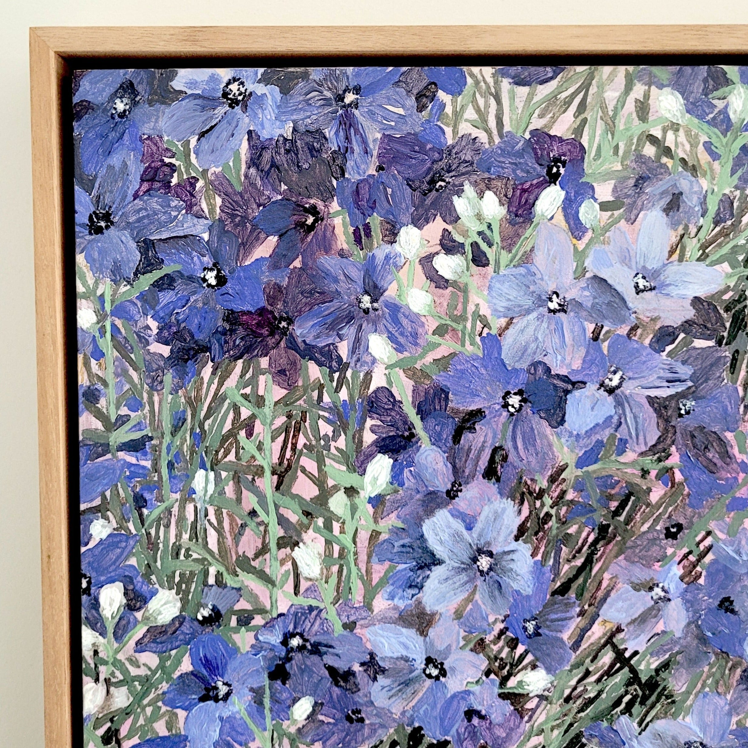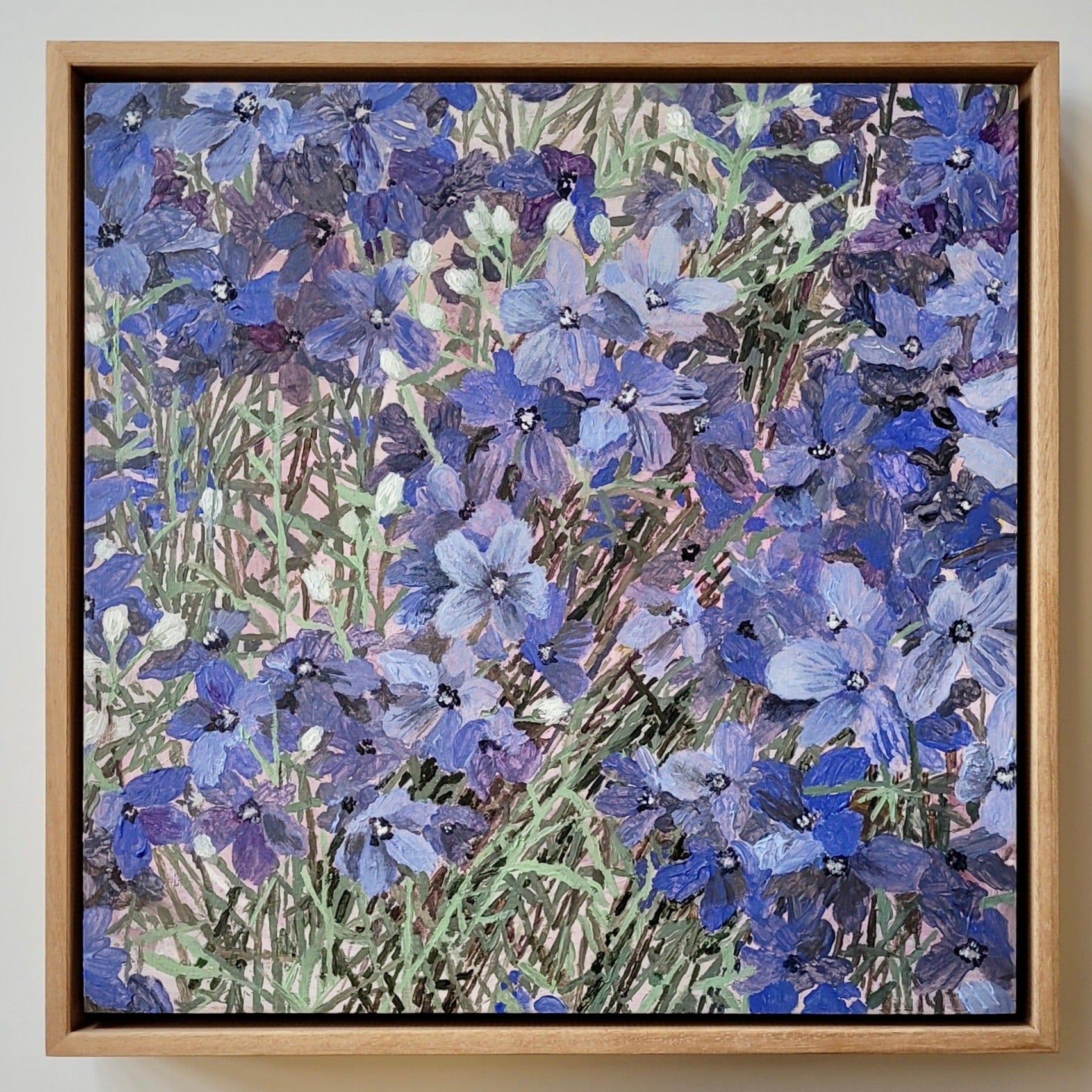 Dance of the Delphiniums: A captivating painting filled with dynamic movement. The canvas comes alive with the graceful sway of the many stalks inviting you into a secret world.