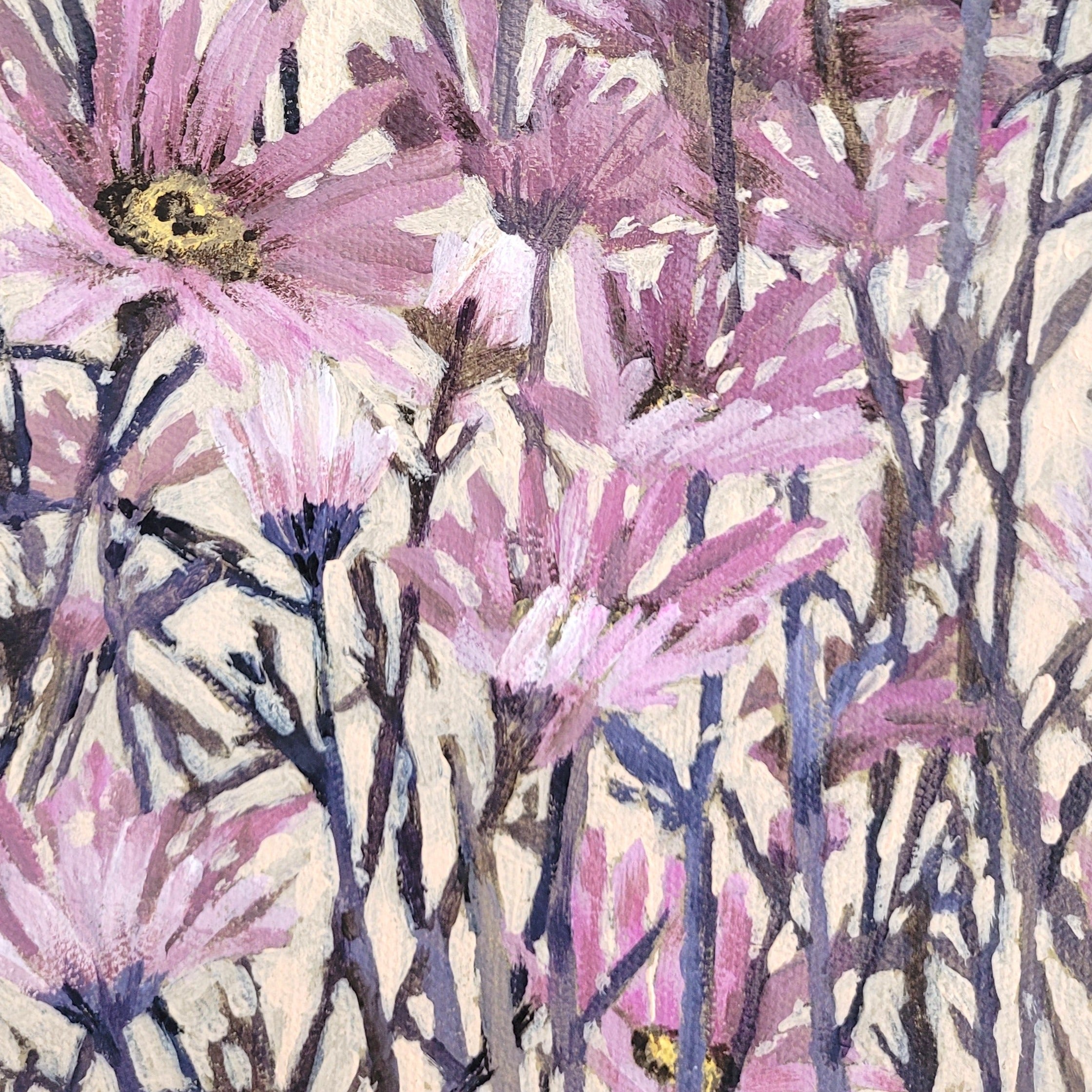 These paintings are an homage to the strength and resilience of wildflowers, in particular daisies, reminding us that even in the most unexpected places, true beauty can thrive.