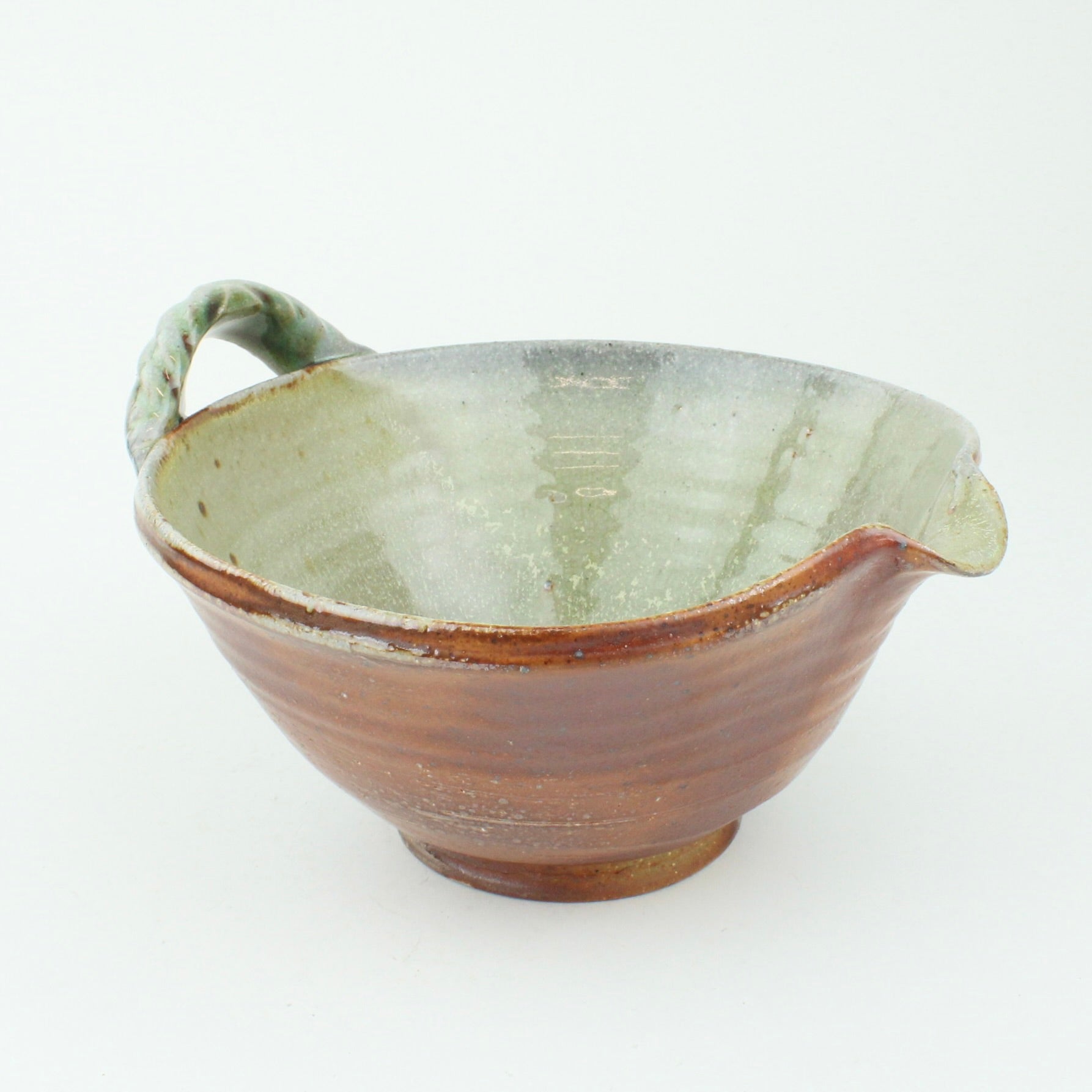Duncan Shearer throws his pots on a slow-moving treadle wheel, responding intuitively to the differing characteristics of clay. Most of his work begins on the wheel before being added to and subtracted from, altering the initial round forms in search of a liveliness and freshness that carries through the entire making process. His firing method, using a wood kiln and spraying a small quantity of soda ash solution at high temperatures, introduces an inherent unpredictability, creating variegated flashings and speckled glaze patterns that make each piece unique.