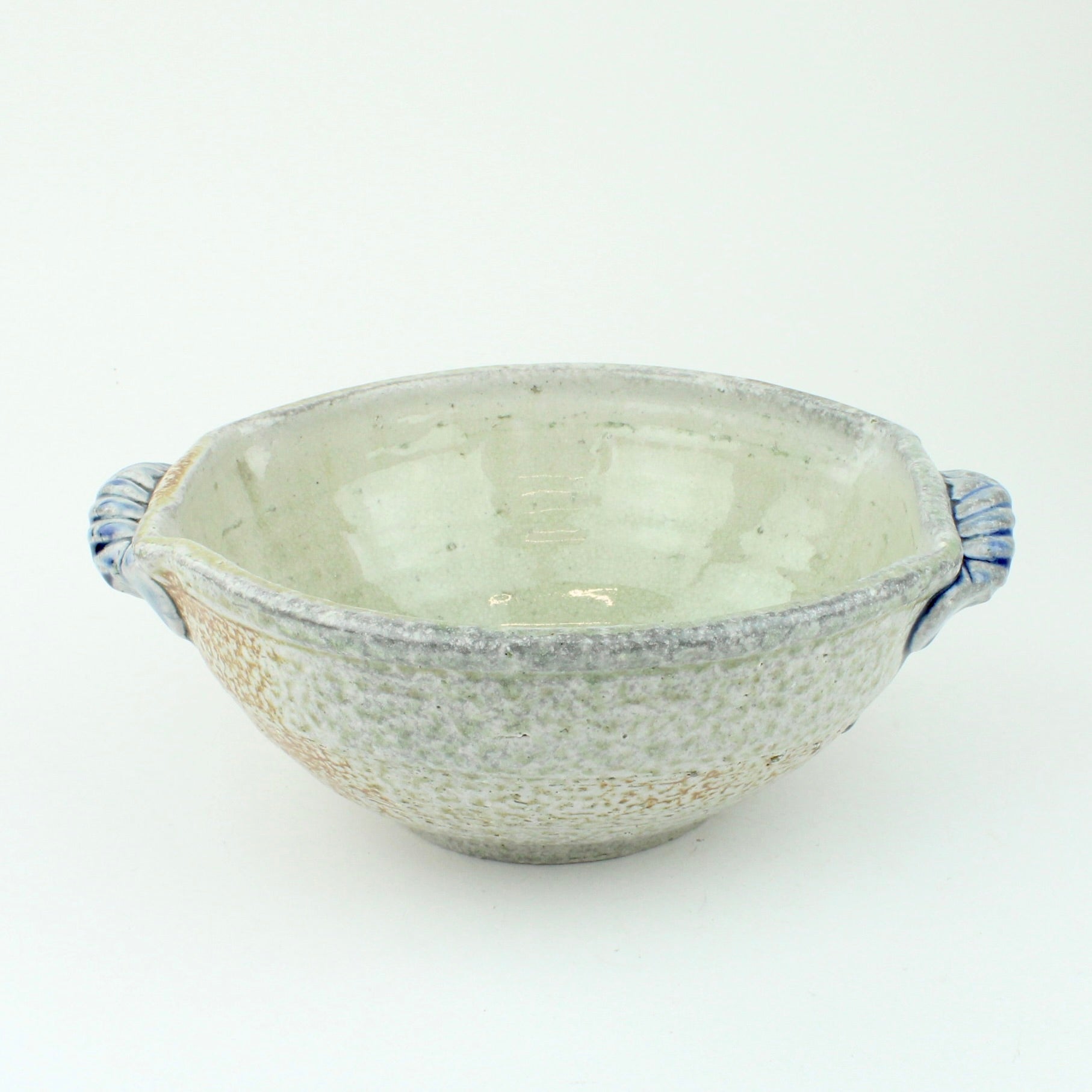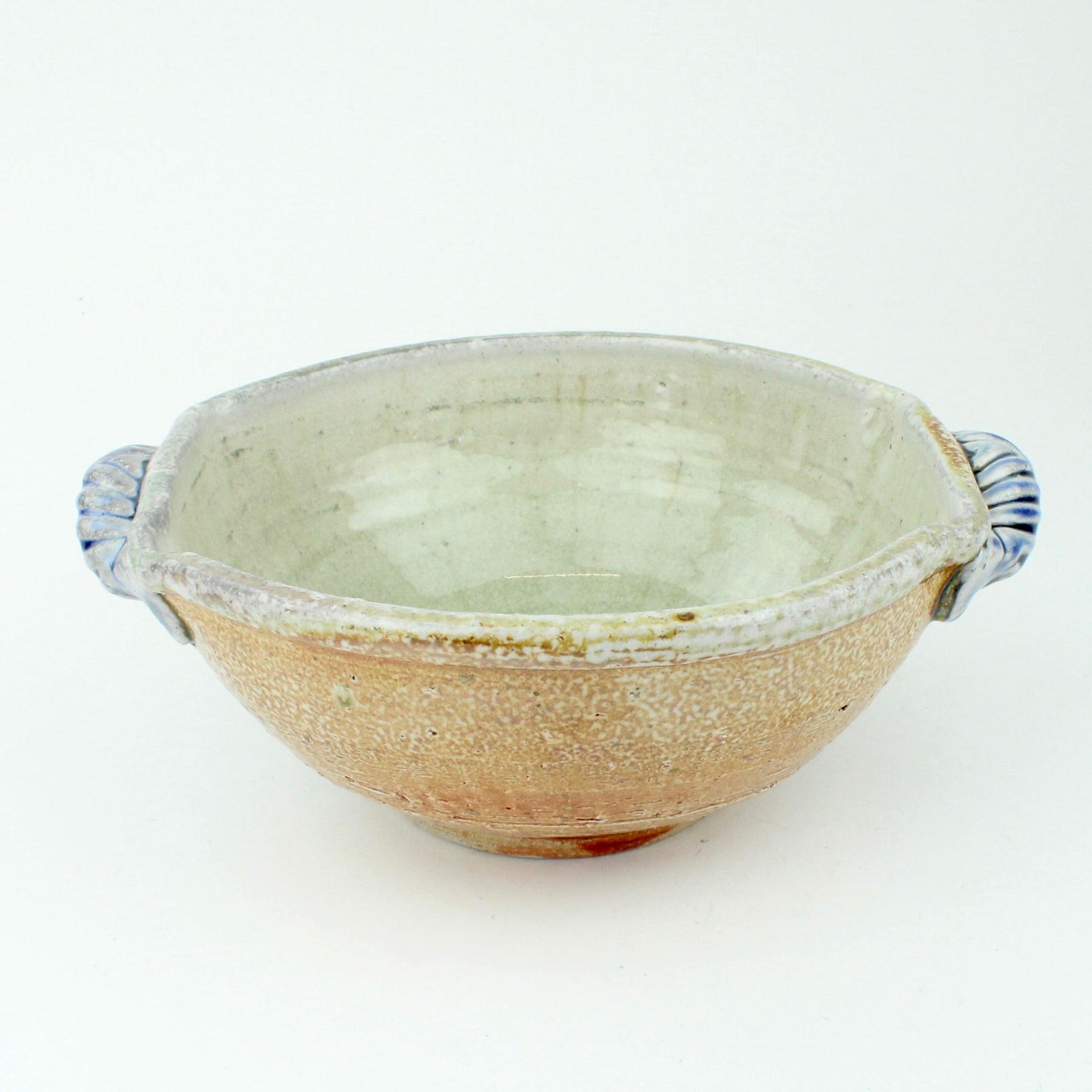 Duncan Shearer throws his pots on a slow-moving treadle wheel, responding intuitively to the differing characteristics of clay. Most of his work begins on the wheel before being added to and subtracted from, altering the initial round forms in search of a liveliness and freshness that carries through the entire making process. His firing method, using a wood kiln and spraying a small quantity of soda ash solution at high temperatures, introduces an inherent unpredictability, creating variegated flashings and speckled glaze patterns that make each piece unique.