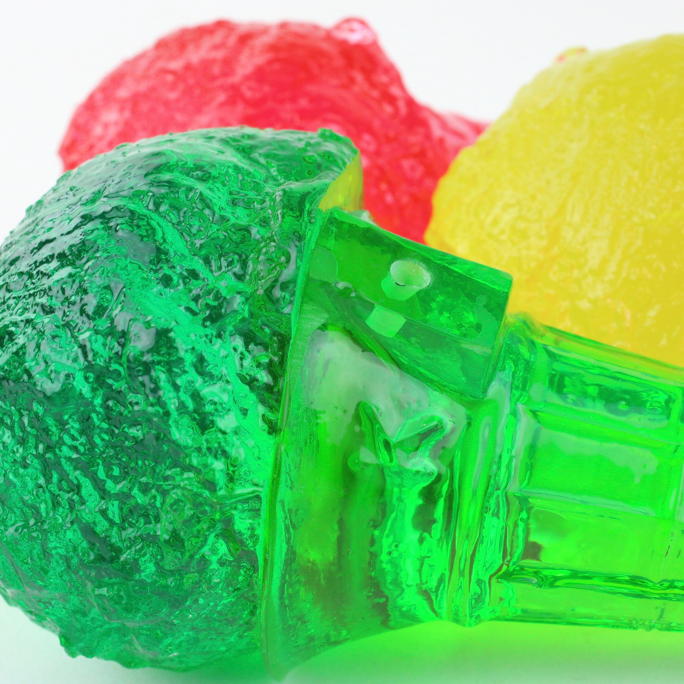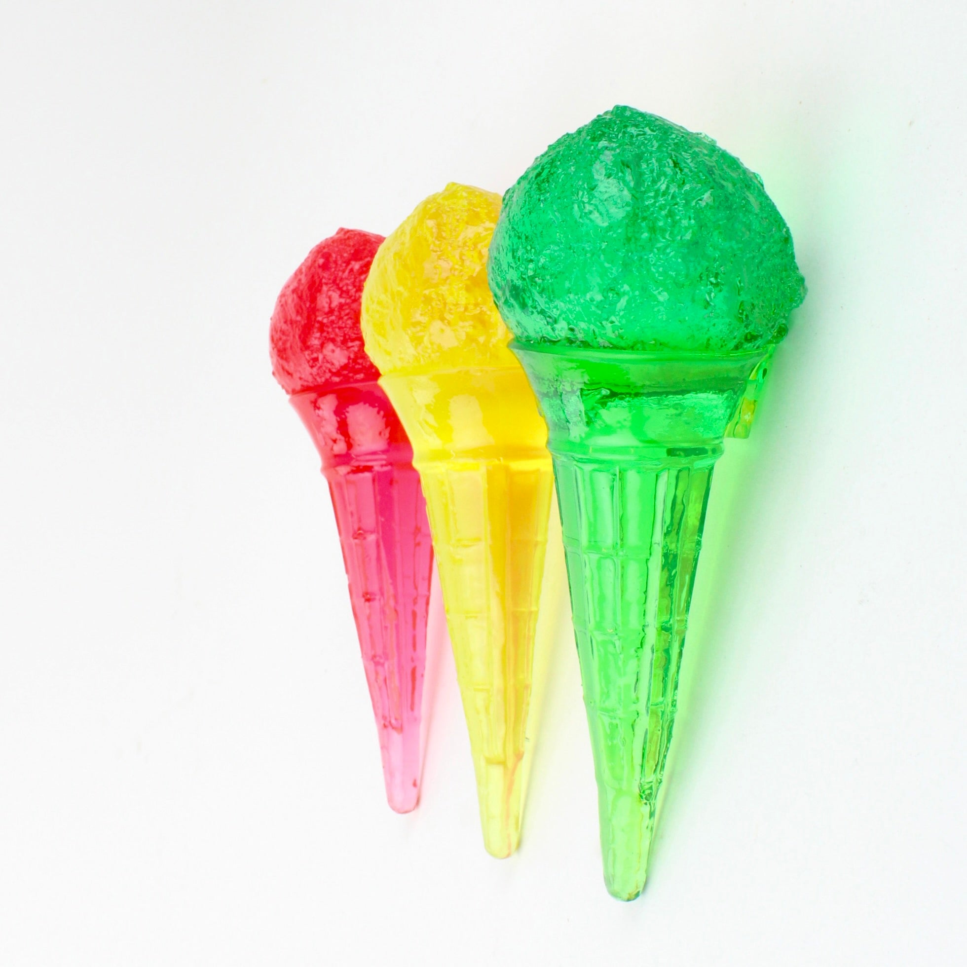 Cast acrylic, wall hung set of three bright ice creams - red, yellow, green