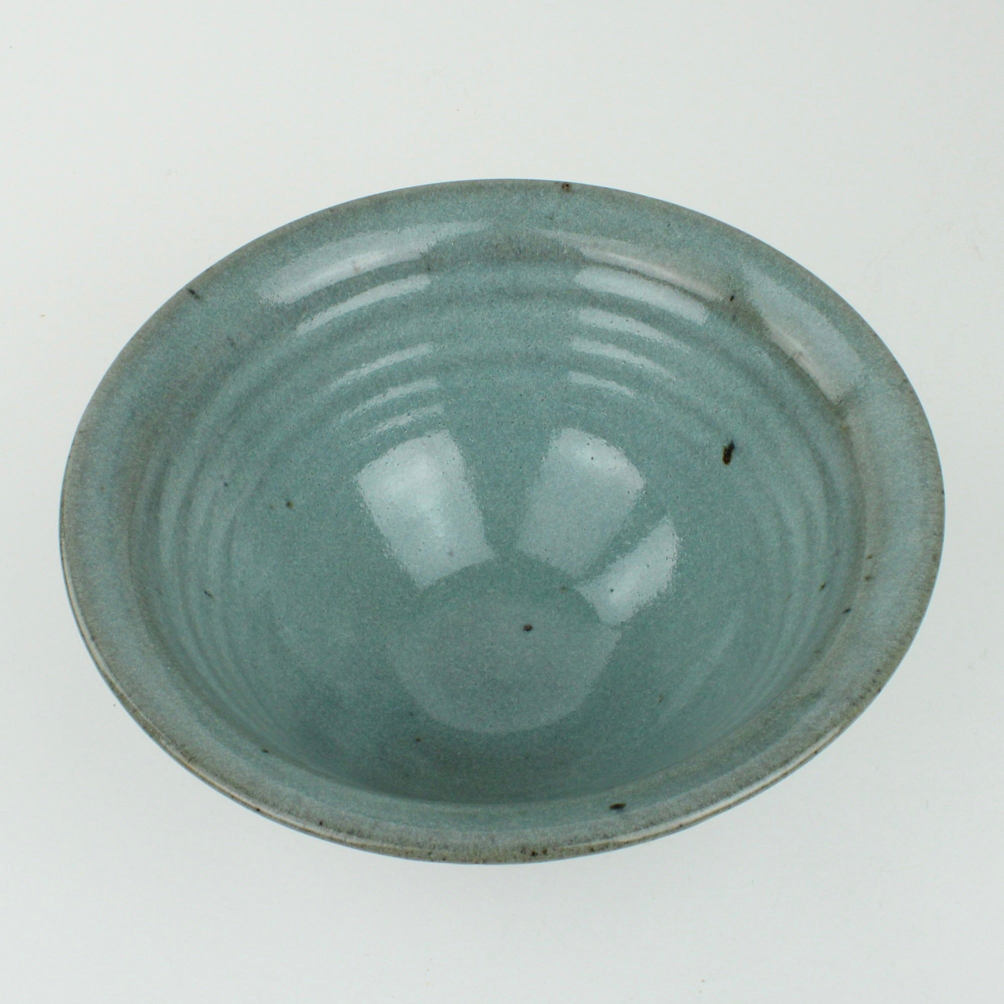 Handcrafted large lipped bowl, chun glazed with a smooth soft blue finish