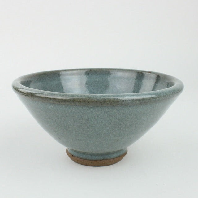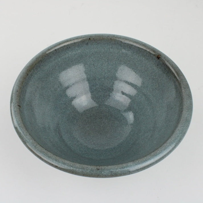 Handcrafted medium bowl, chun glazed with a smooth soft blue finish