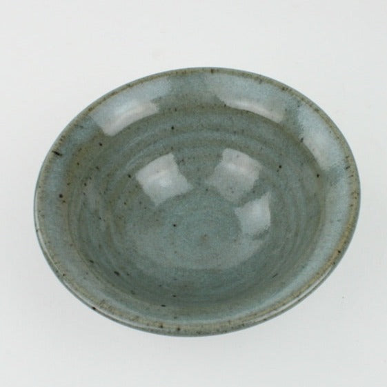 Handcrafted small lipped bowl, chun glazed with a smooth soft blue finish
