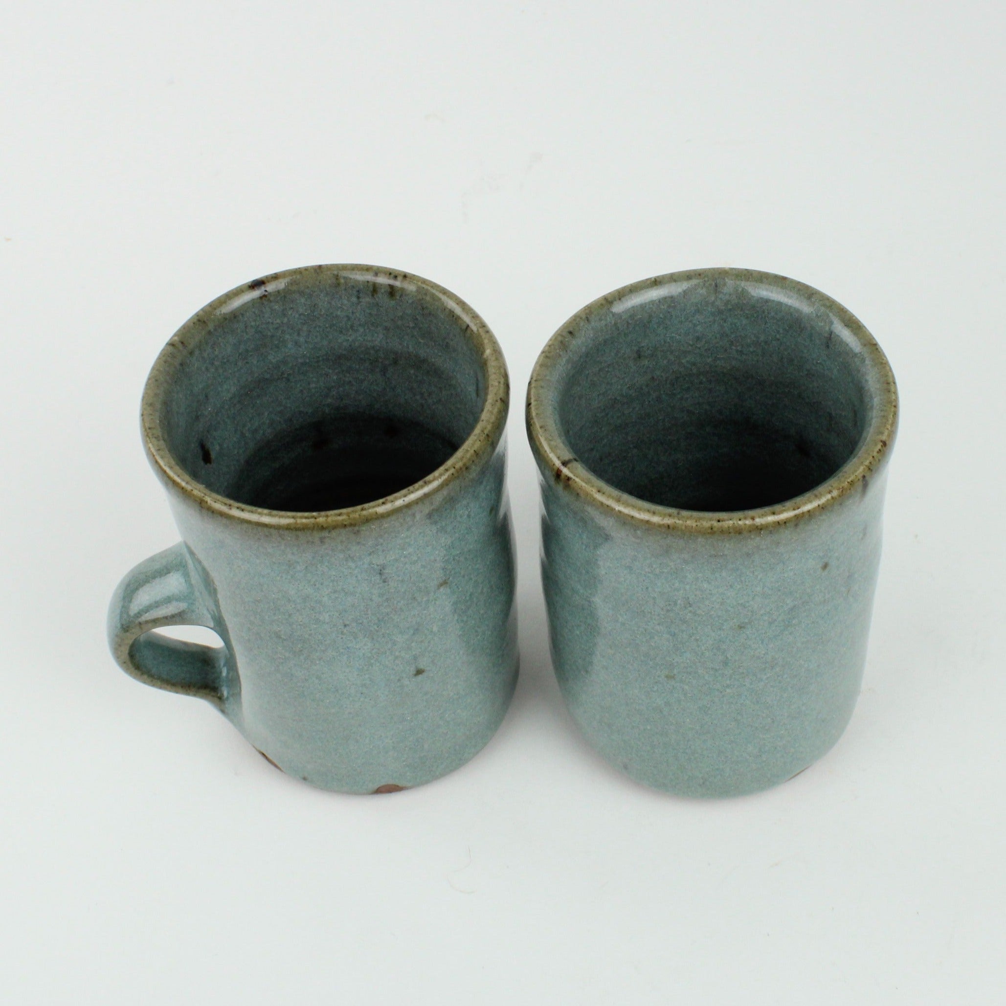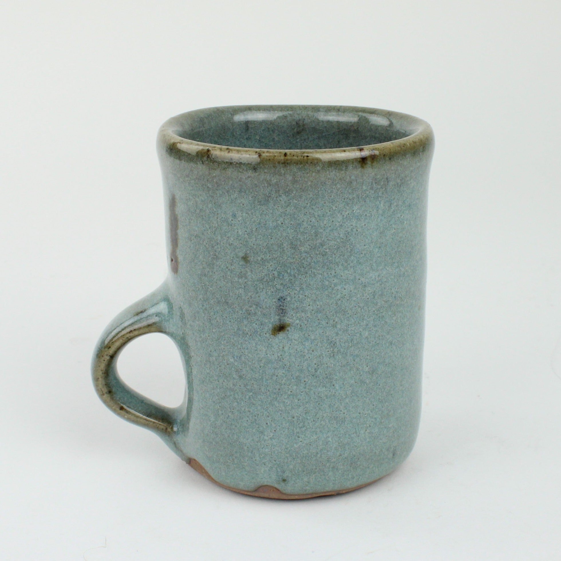 Handcrafted standard mug, chun glazed with a smooth soft blue finish