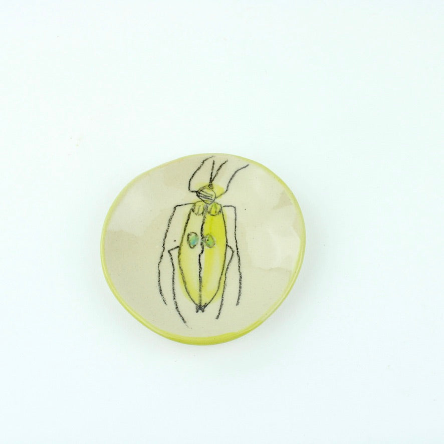 Hand-pressed with linen stoneware clay and individually decorated by hand.