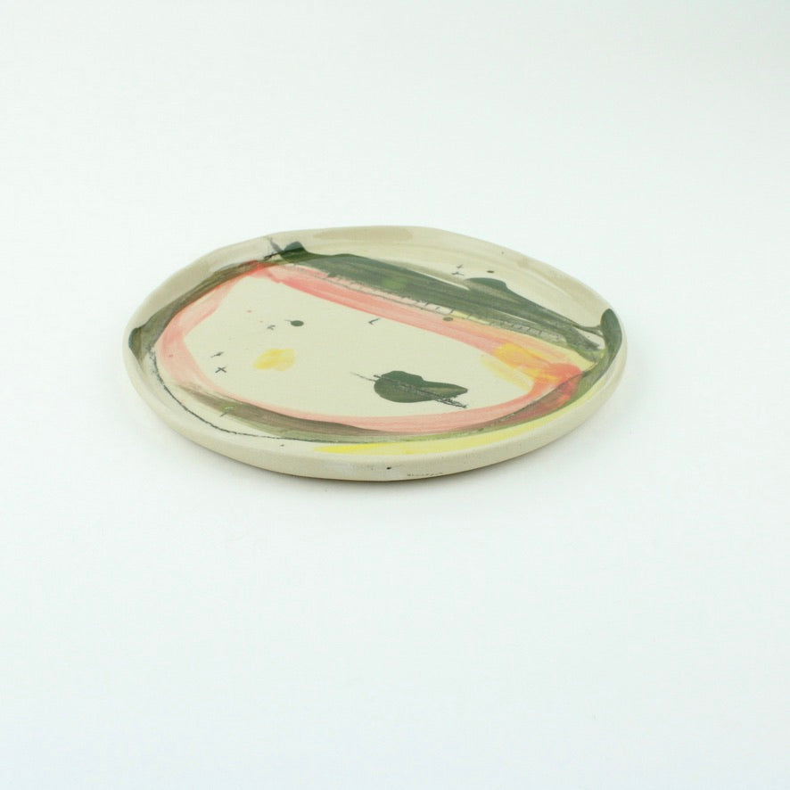 Hand-pressed with linen stoneware clay and individually decorated by hand. These plates stack well together and are perfect to hold a hot cuppa and biscuit.