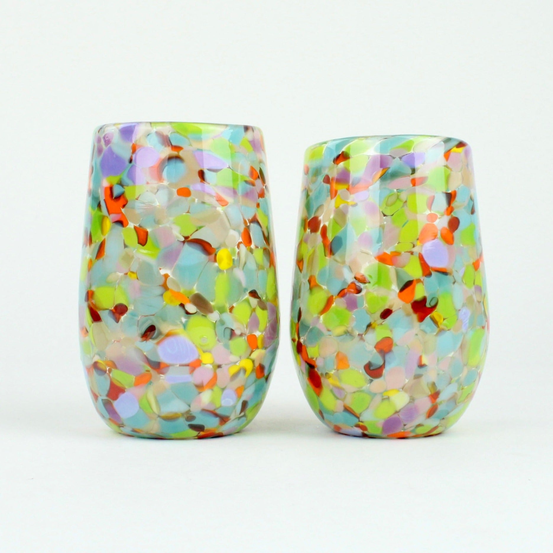 Due to their handmade nature each glass will vary a bit in size and design but are usually around 10-11cm high.
