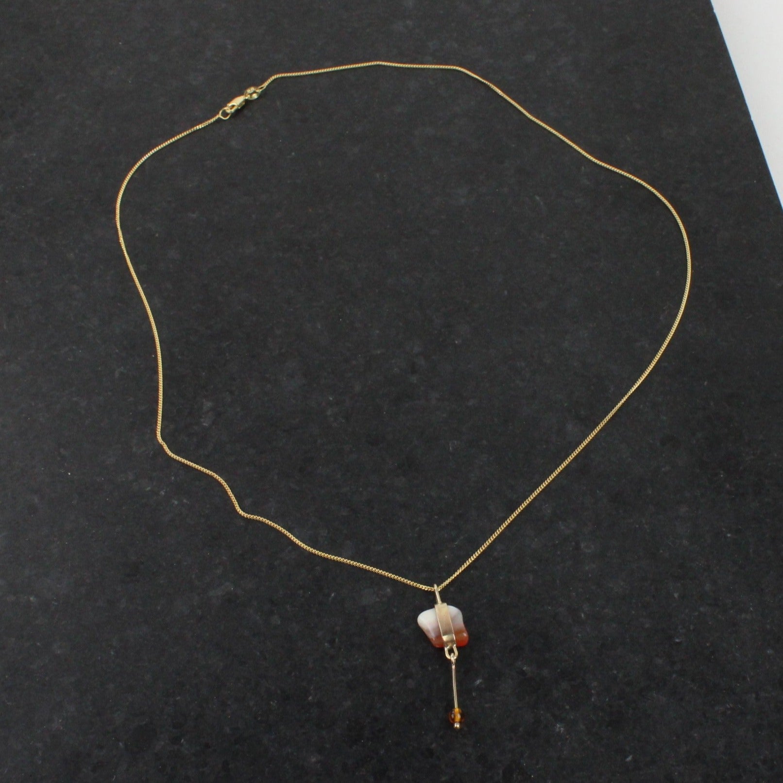 Quartz (apx 10mm x 10mm), quartz bead, 9 ct gold setting on a 450mm 9ct gold plated chain