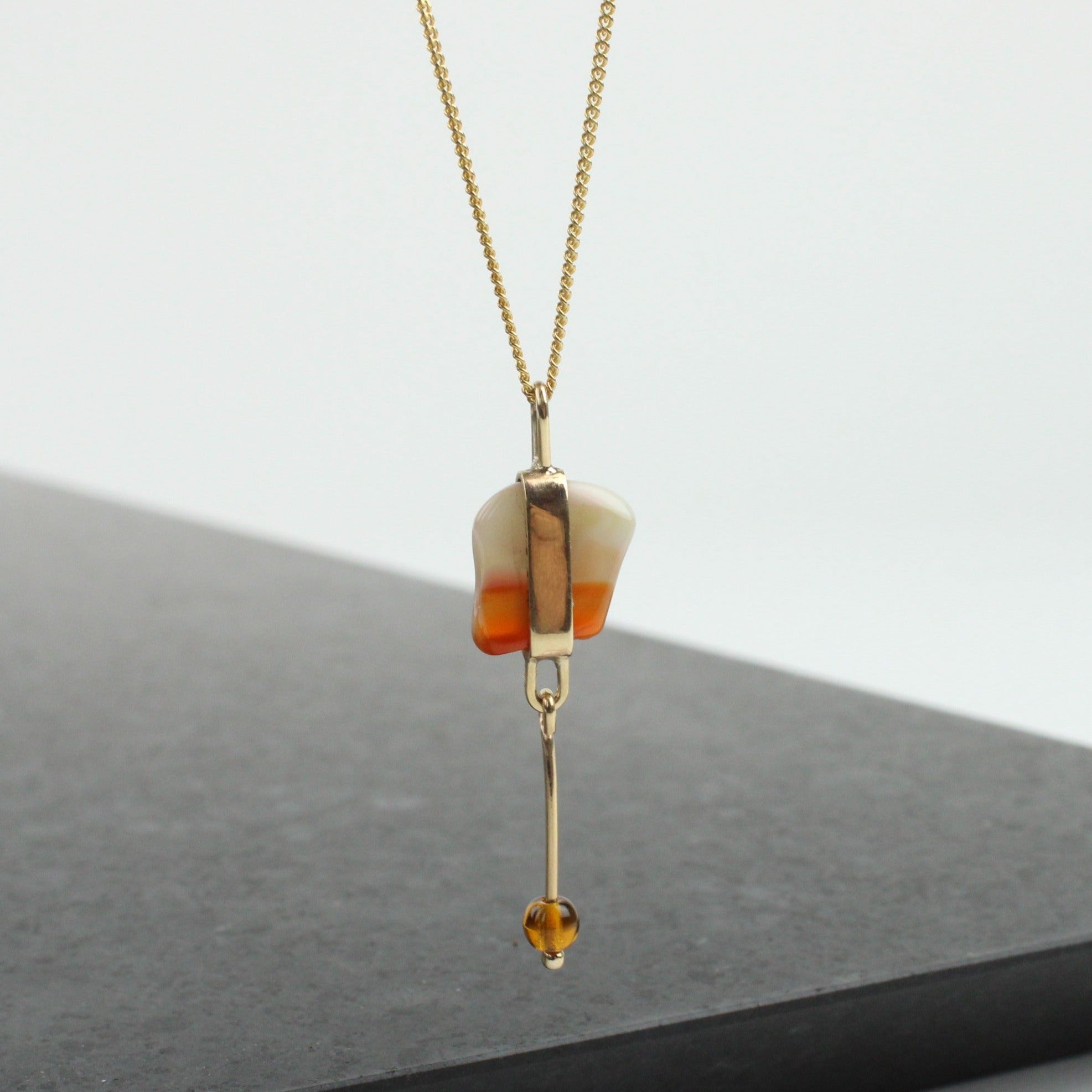 Helena works in precious and semi precious metals in a combination with natural materials such as pearls, shells, feathers, wood, bone and precious, semi precious and beach stones.