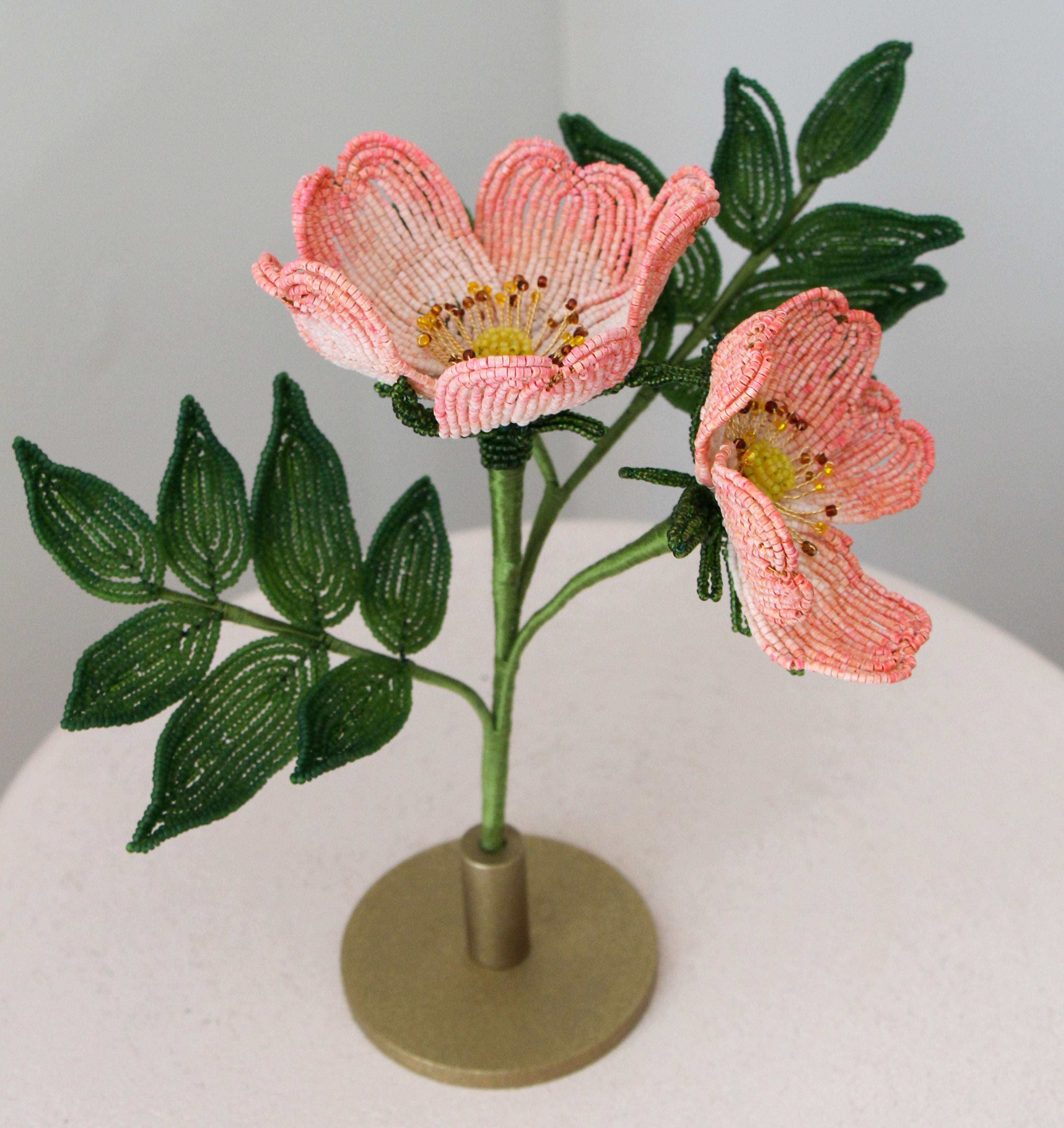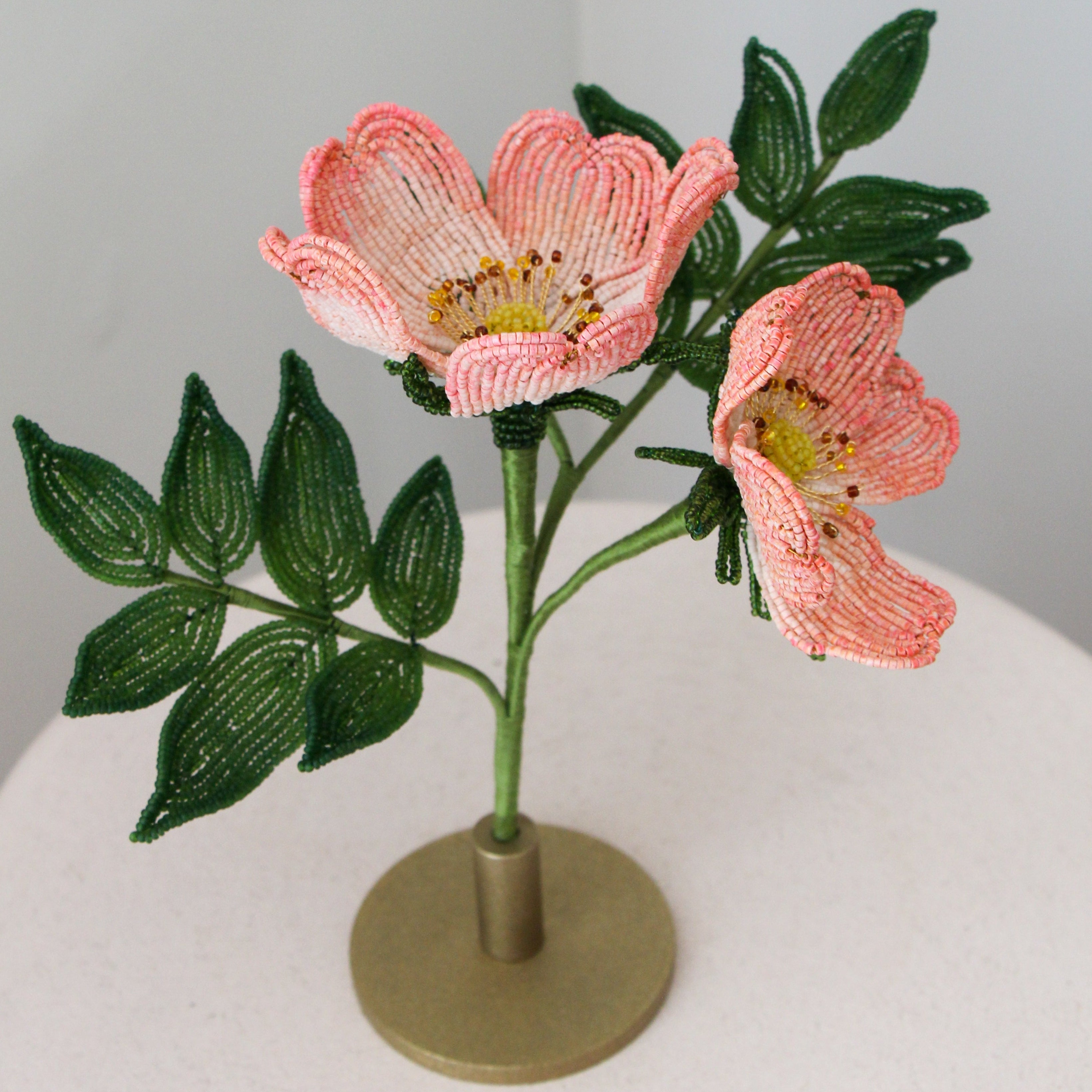 Hollie's creative process involves careful study of references like photographs, botanical drawings, and real plants. She painstakingly strings tiny beads onto wire to sculpt petals, allowing room for refinement as needed. Her dedication lies in perfecting the initial pattern and experimenting with colours to capture a realistic likeness with her chosen materials.