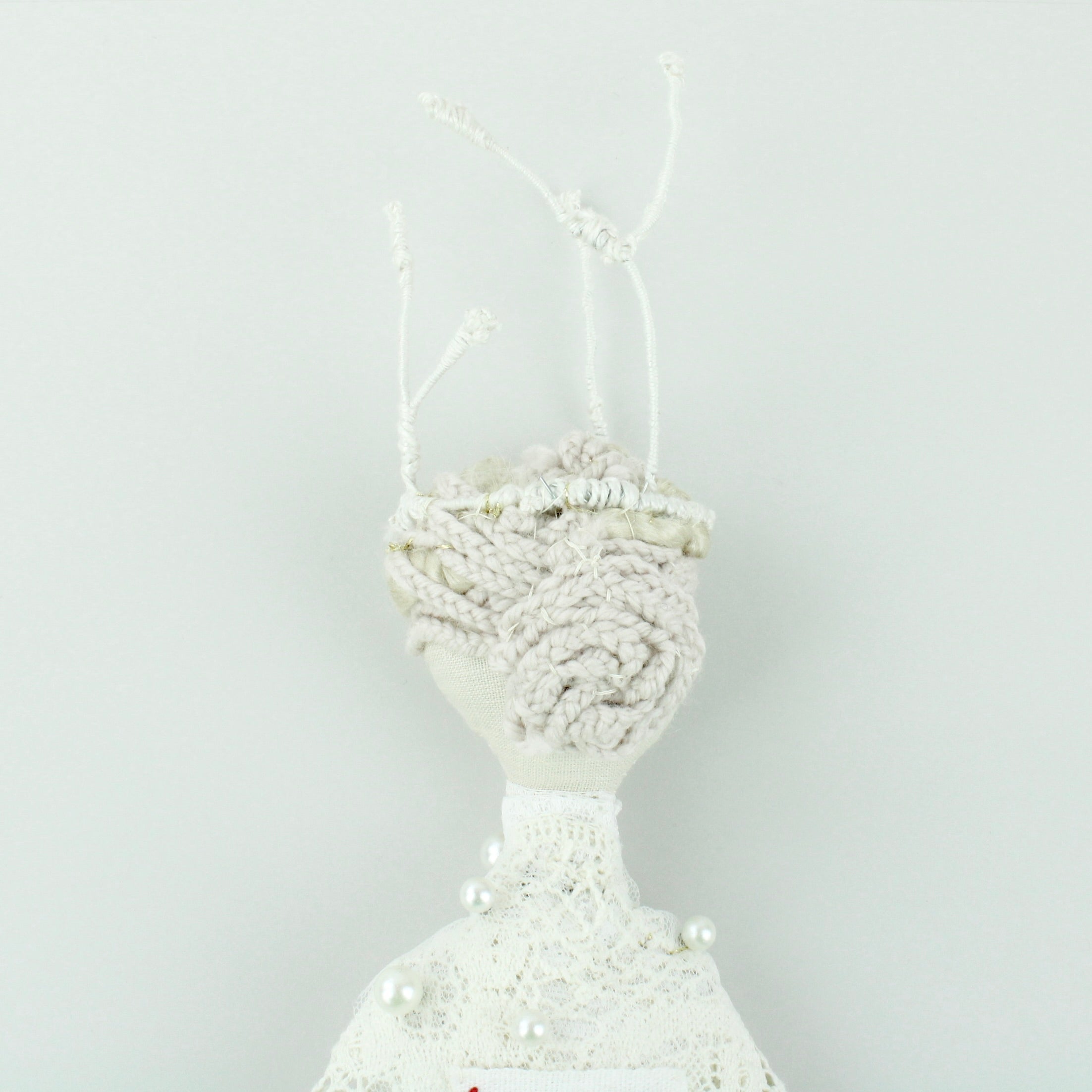 Wall hung. Crafted from Victorian bodice lace, mattress tacking, silk, wire, merino, tulle and twigs