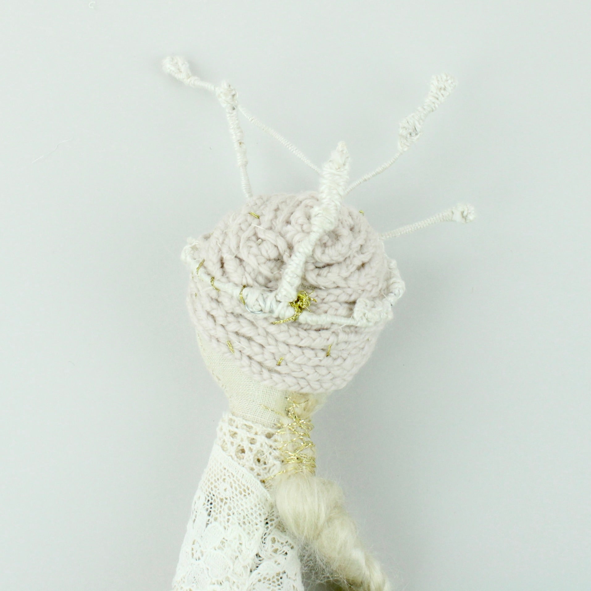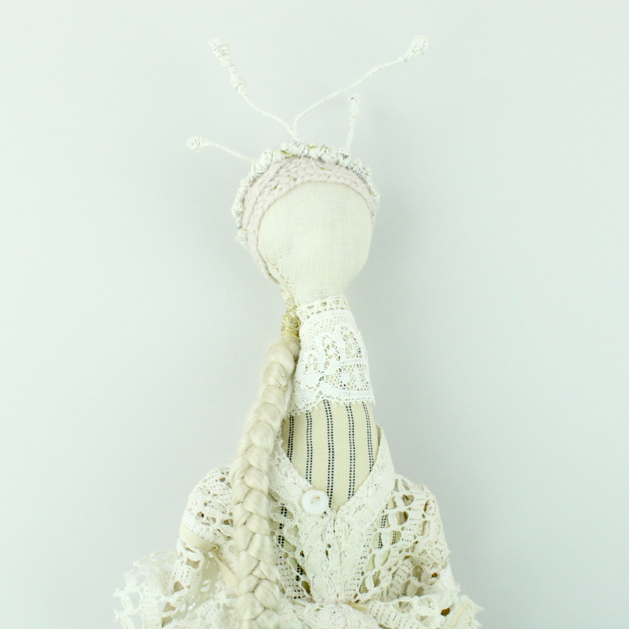 Wall hung. Crafted from Victorian bodice lace, mattress tacking, silk, wire, merino, tulle and twigs