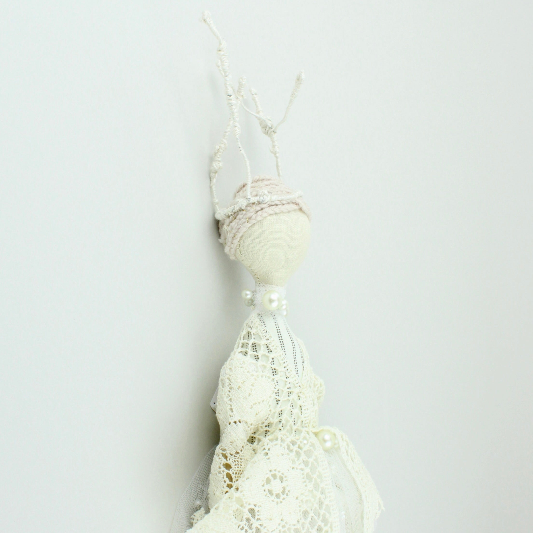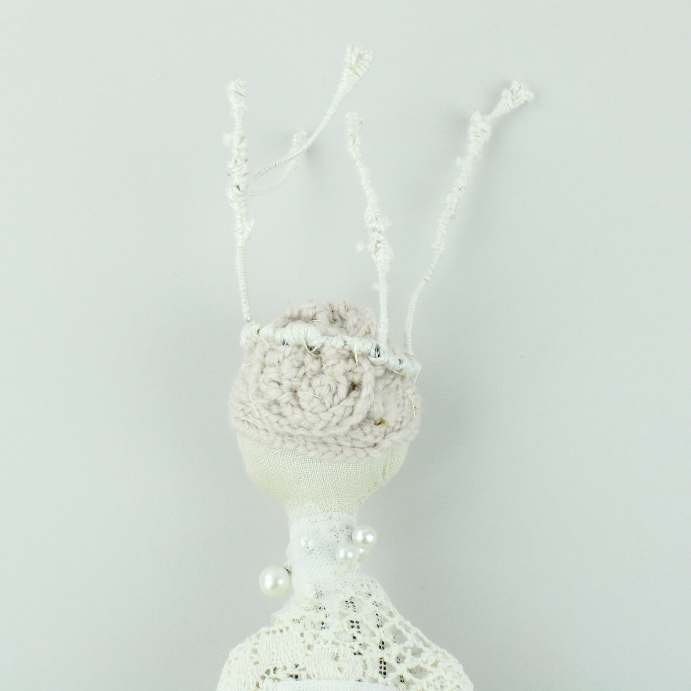 Wall hung. Crafted from Victorian bodice lace, mattress tacking, silk, wire, merino, tulle and twigs