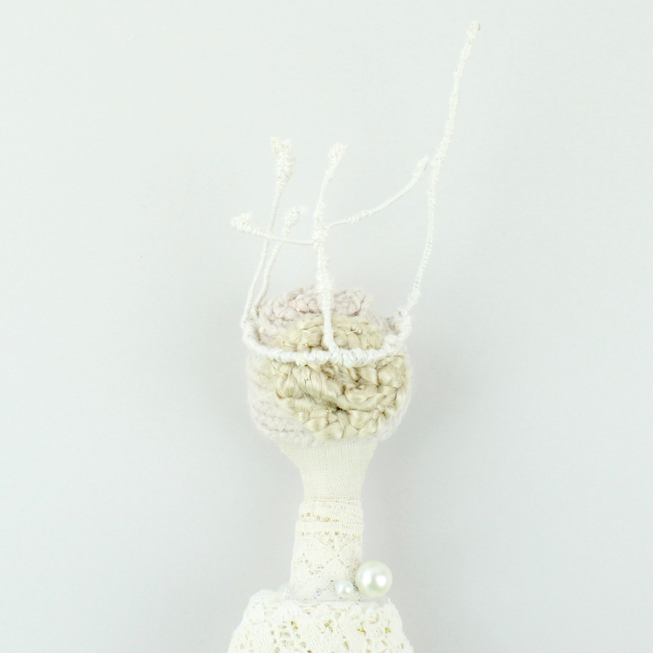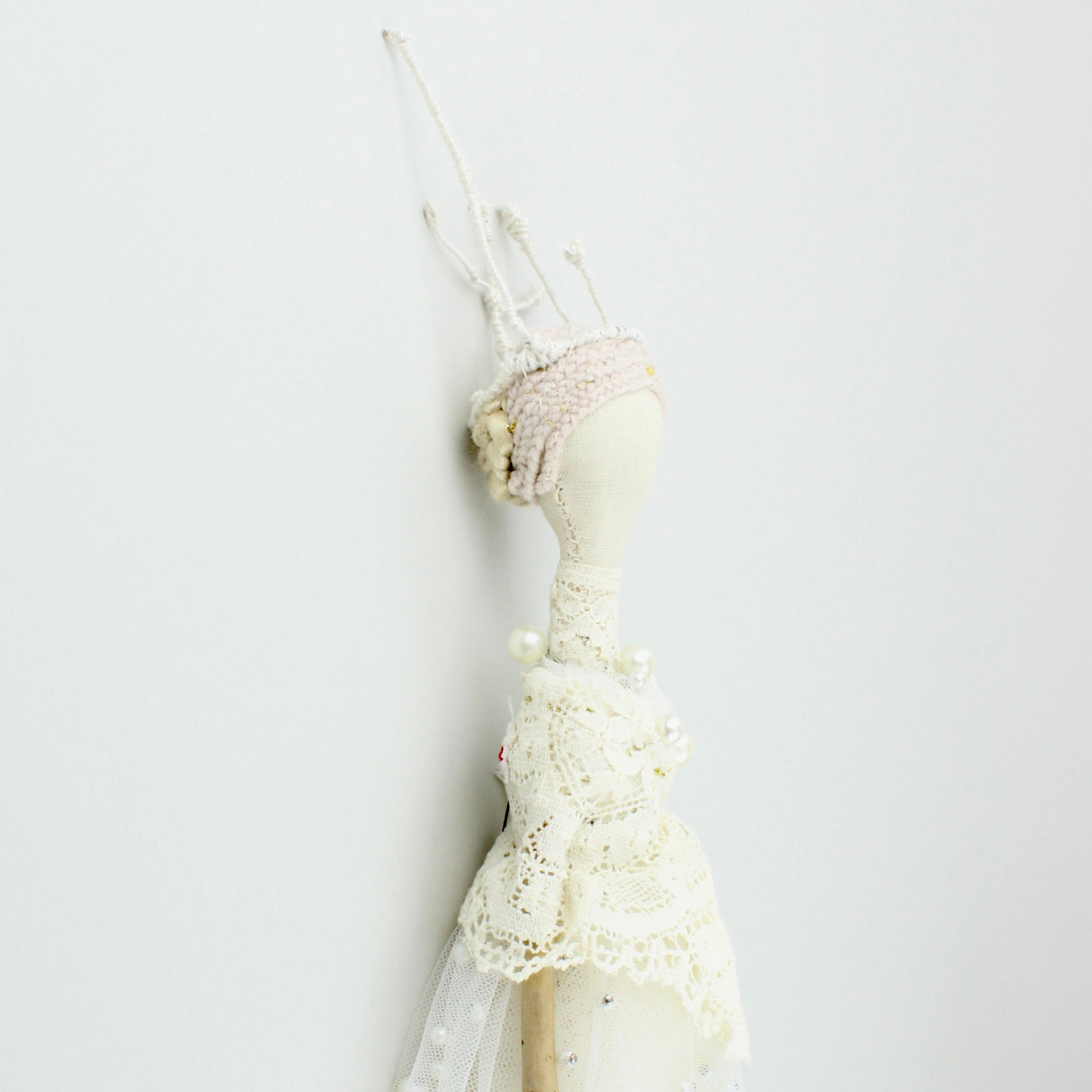 Wall hung. Crafted from Victorian bodice lace, mattress tacking, silk, wire, merino, tulle and twigs