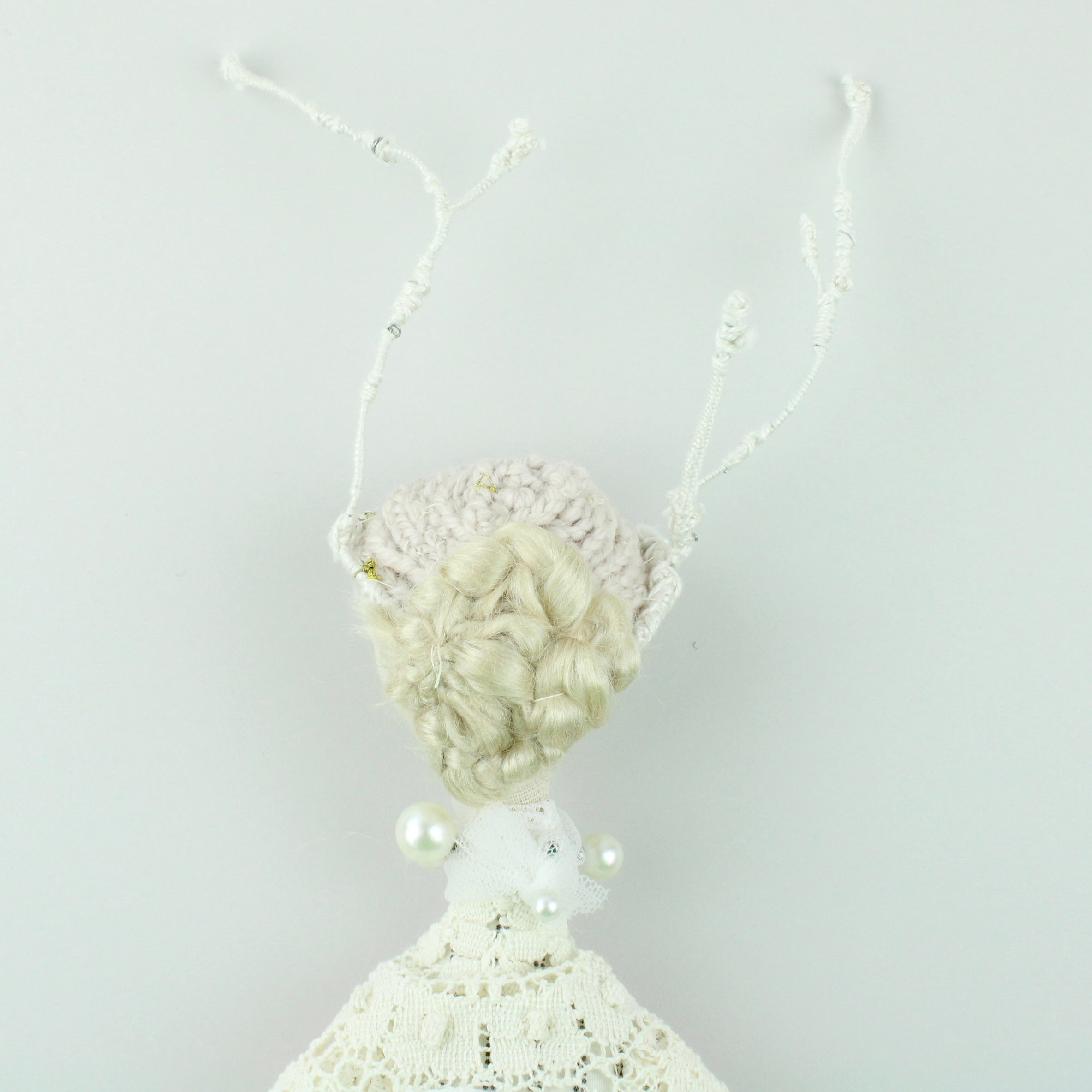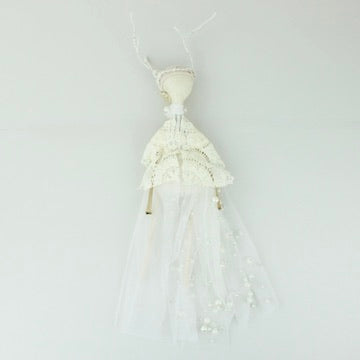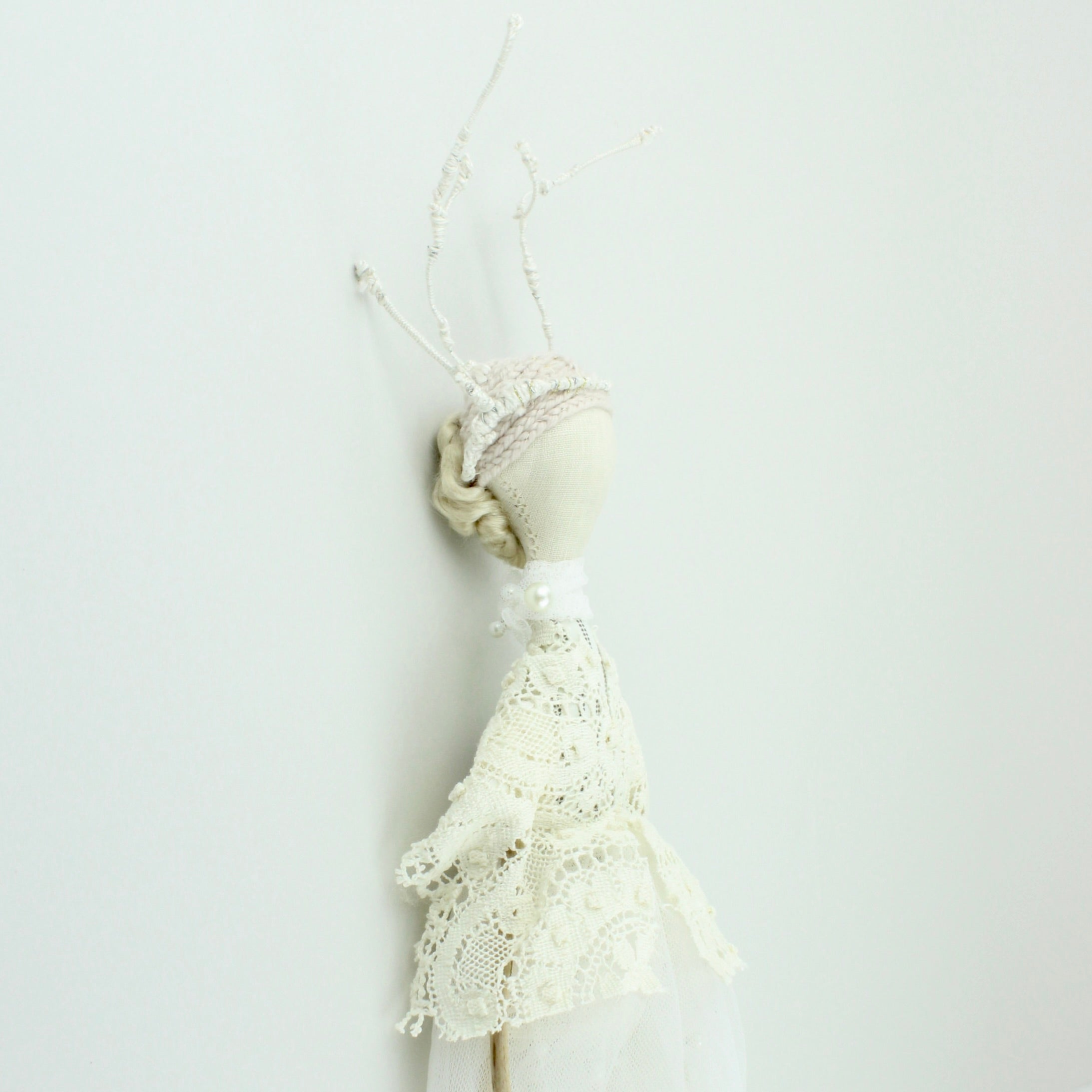 Wall hung. Crafted from Victorian bodice lace, mattress tacking, silk, wire, merino, tulle and twigs