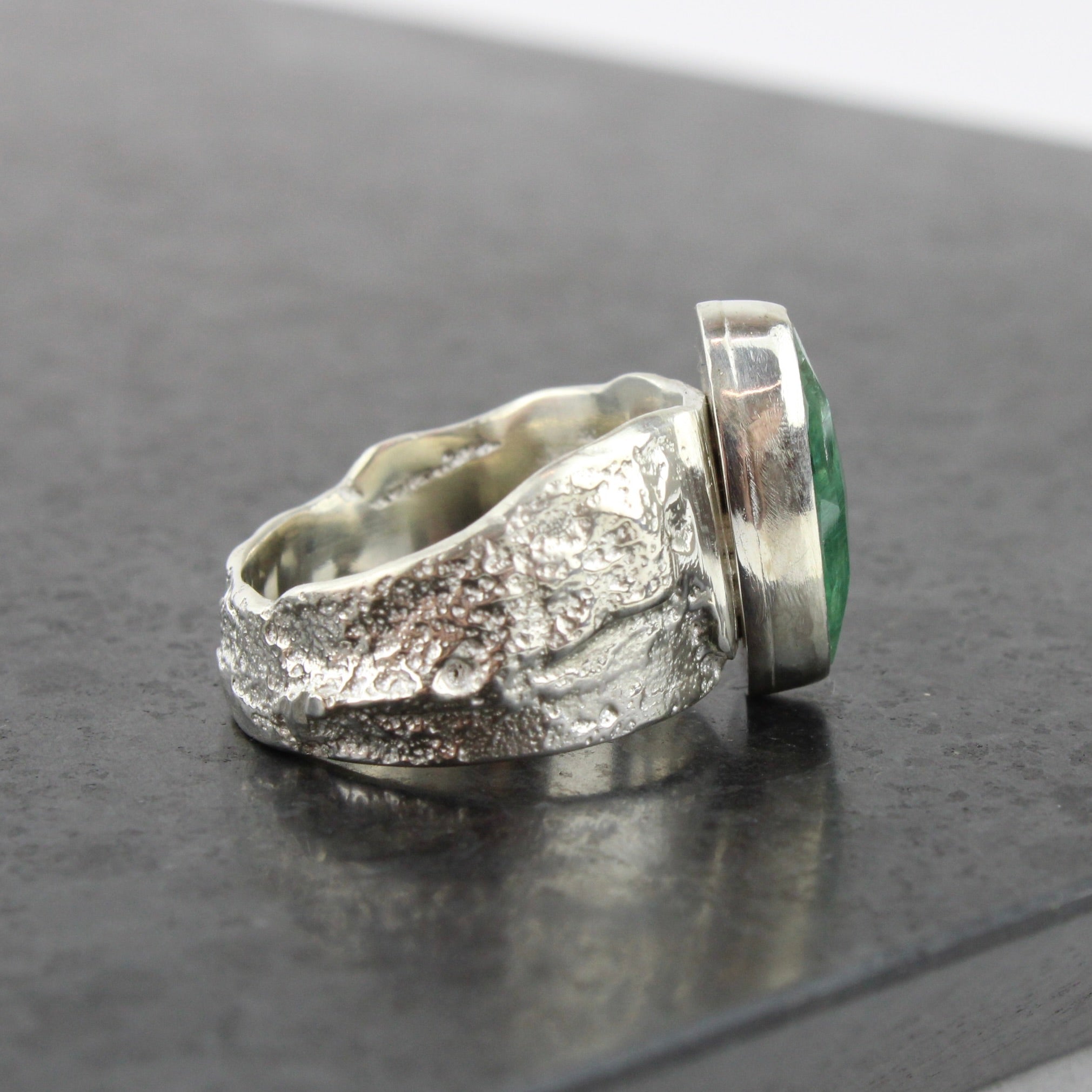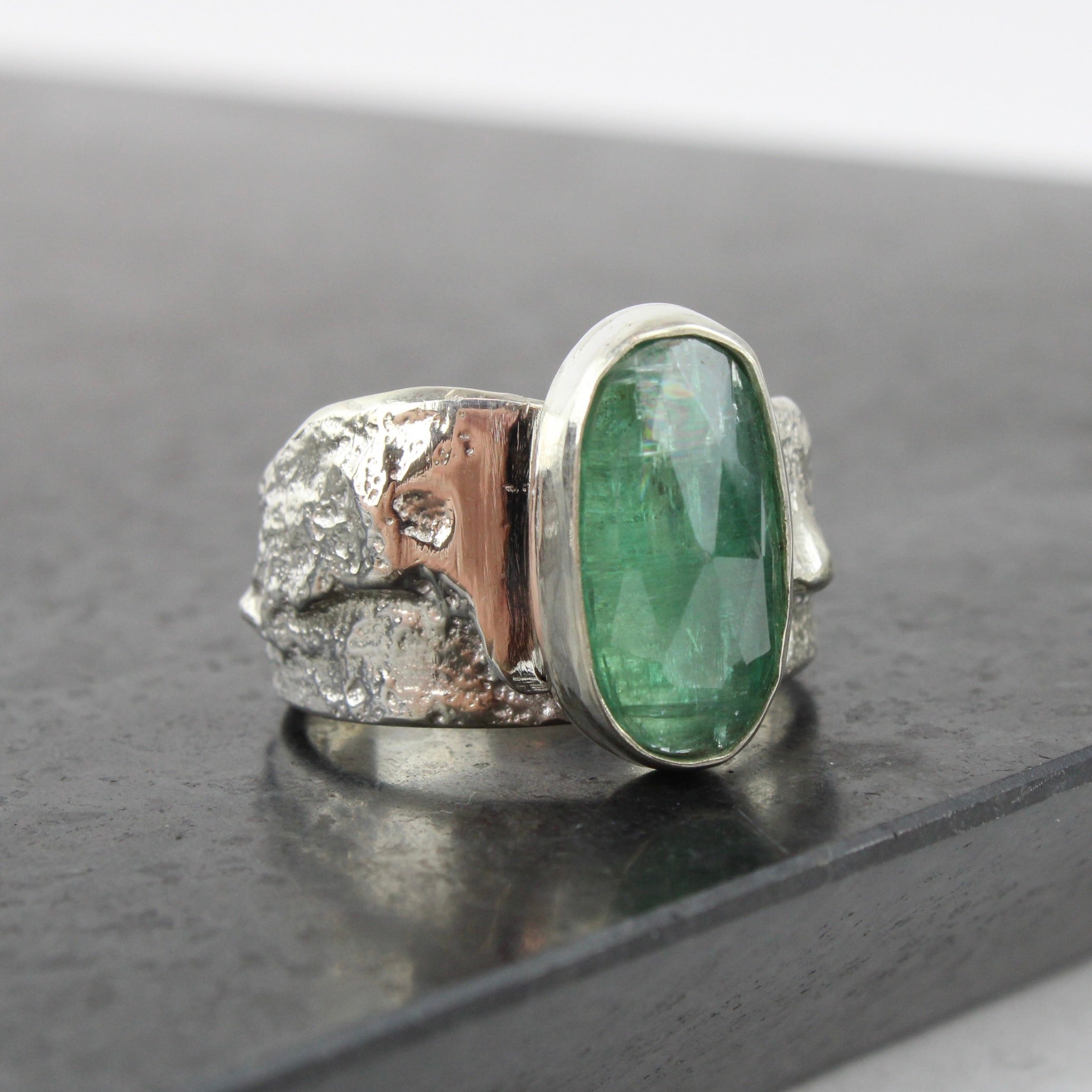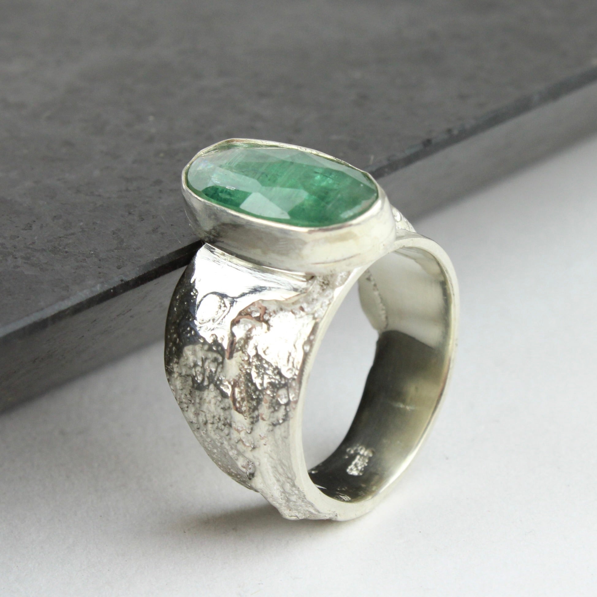 Sandcast, textured sterling silver with oval bezel green kyanite