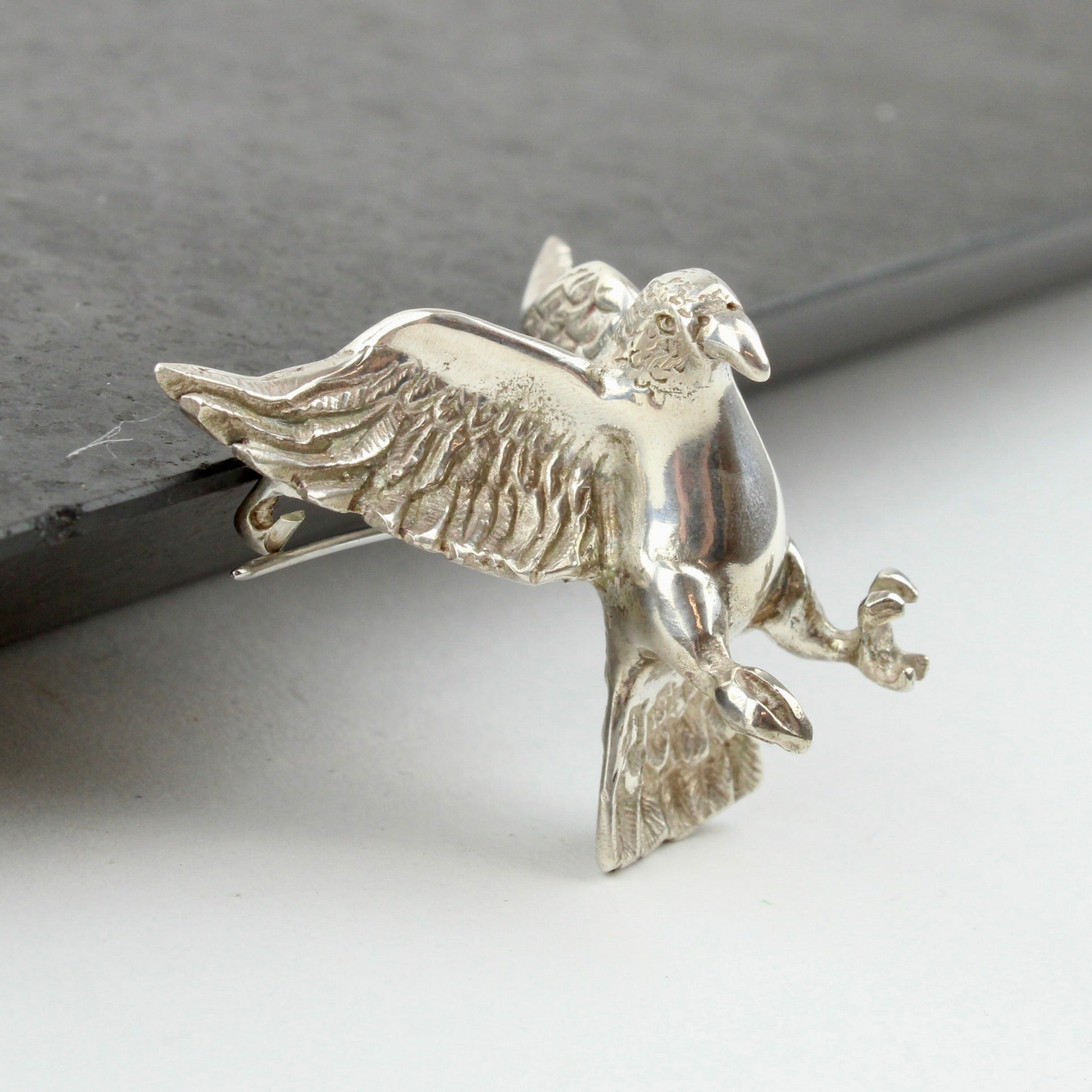 A statement piece from The Wild - this hand-carved miniature kea is cast in solid silver.