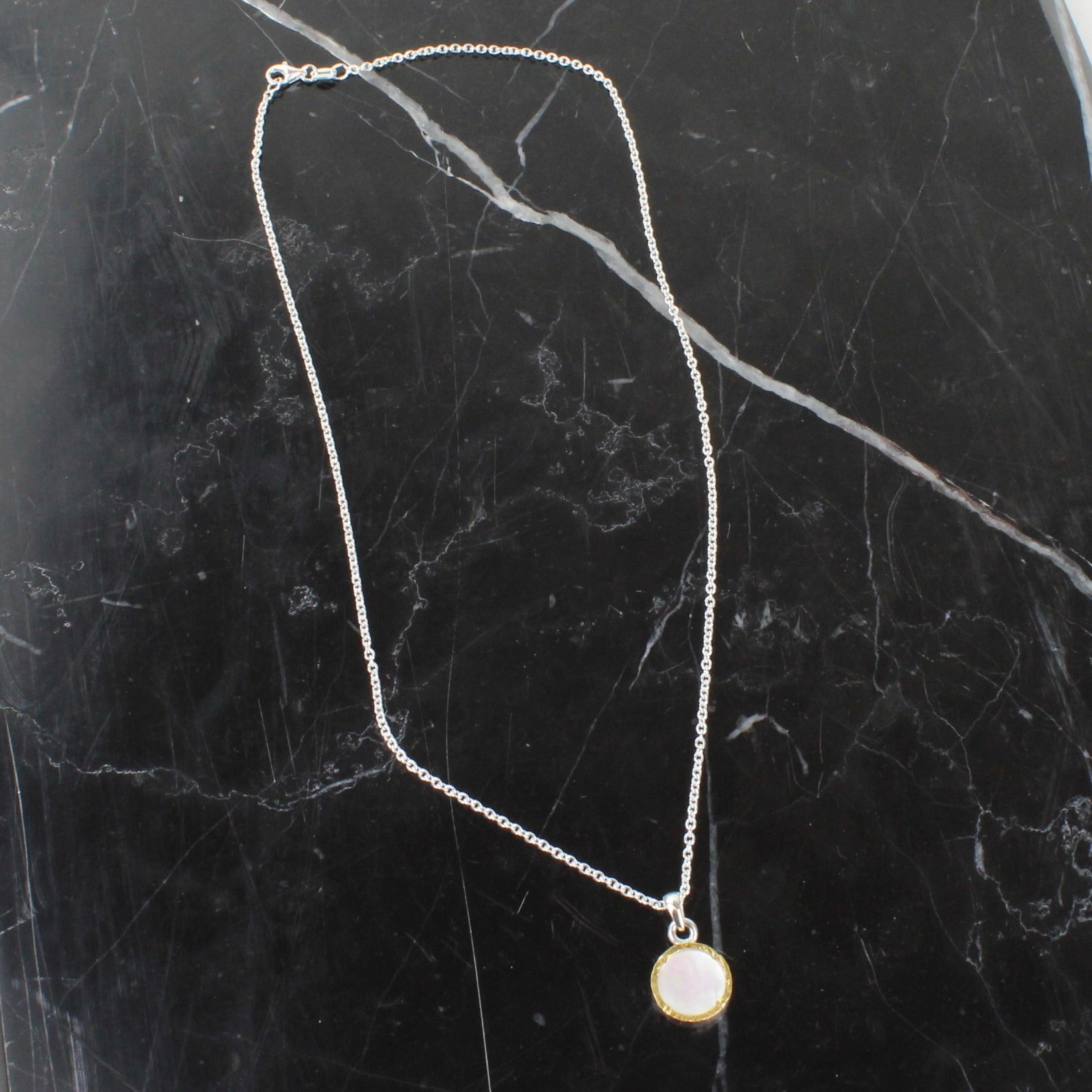 Home/Jewellery/Small Mother of Pearl Pendant - round gold