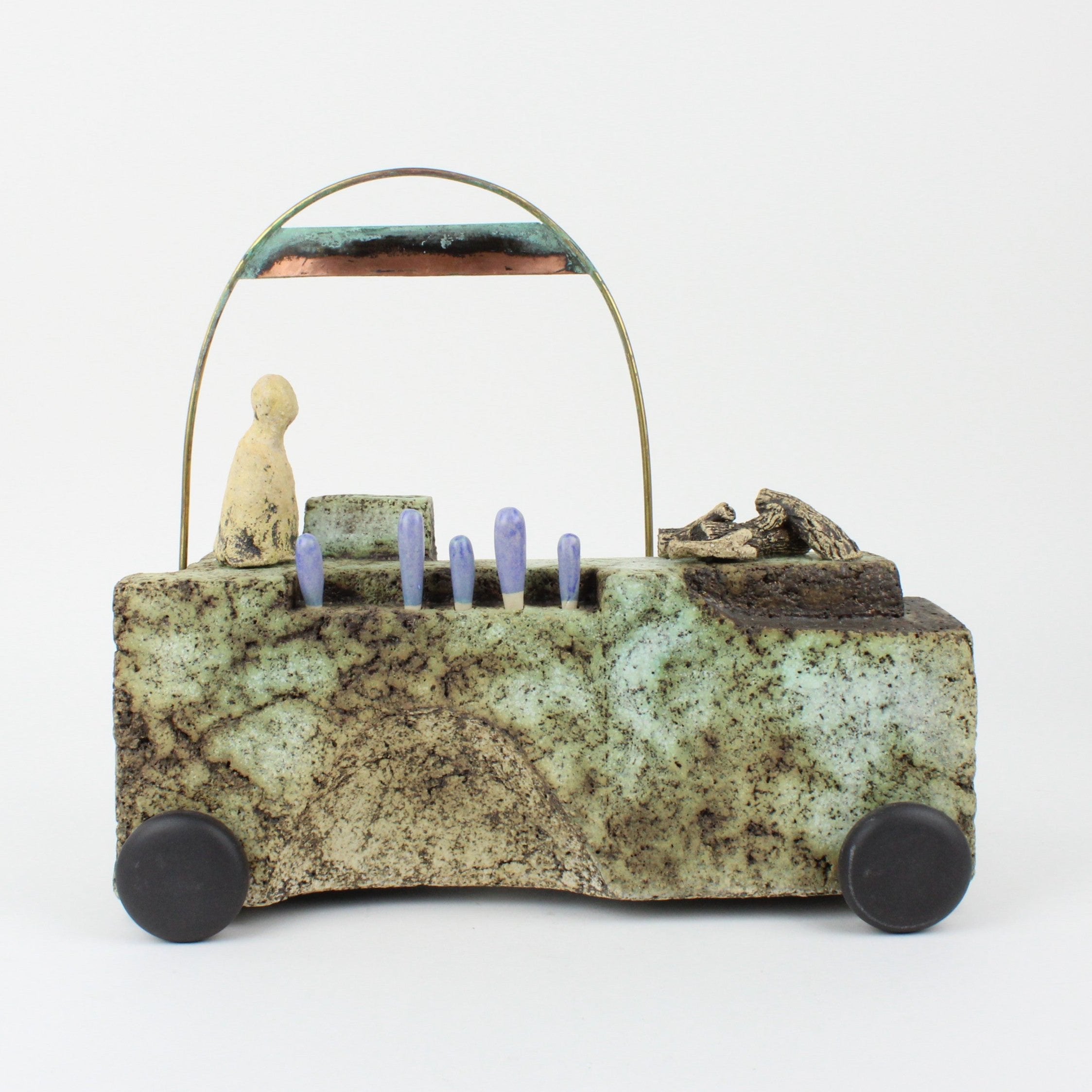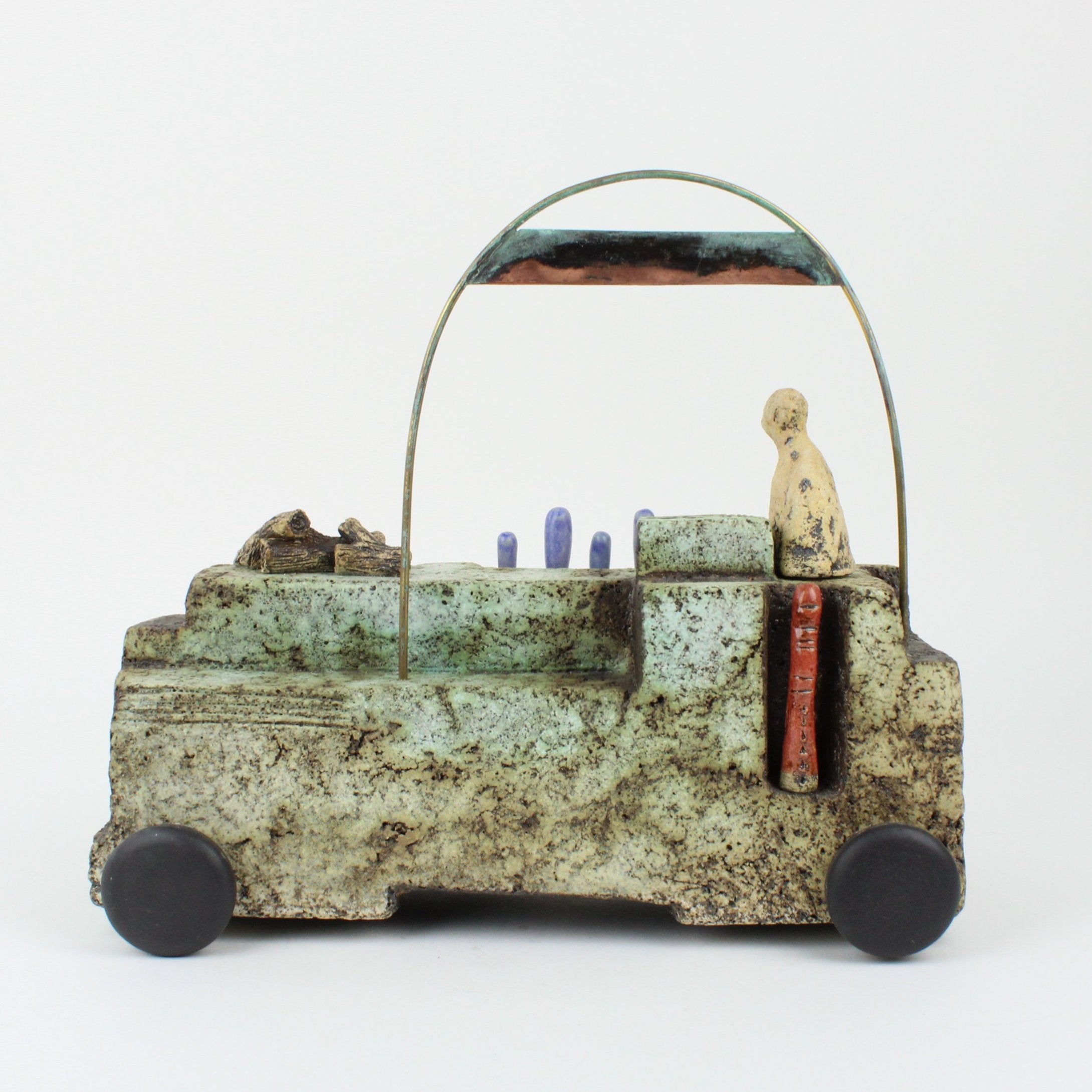 Brendan creates his sculptural pieces utilising other materials with ceramics such as steel, brass, aluminium and wood.