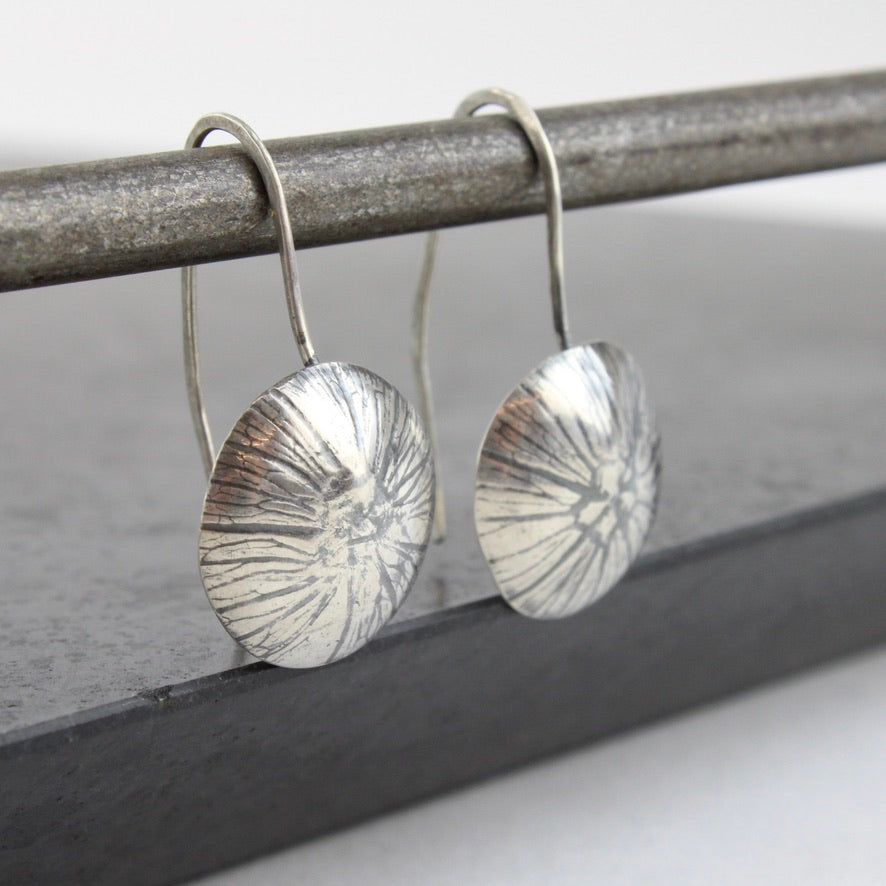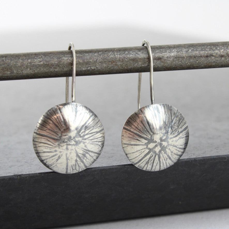 Oxidised sterling silver domes textured with cape gooseberry skeletal husks