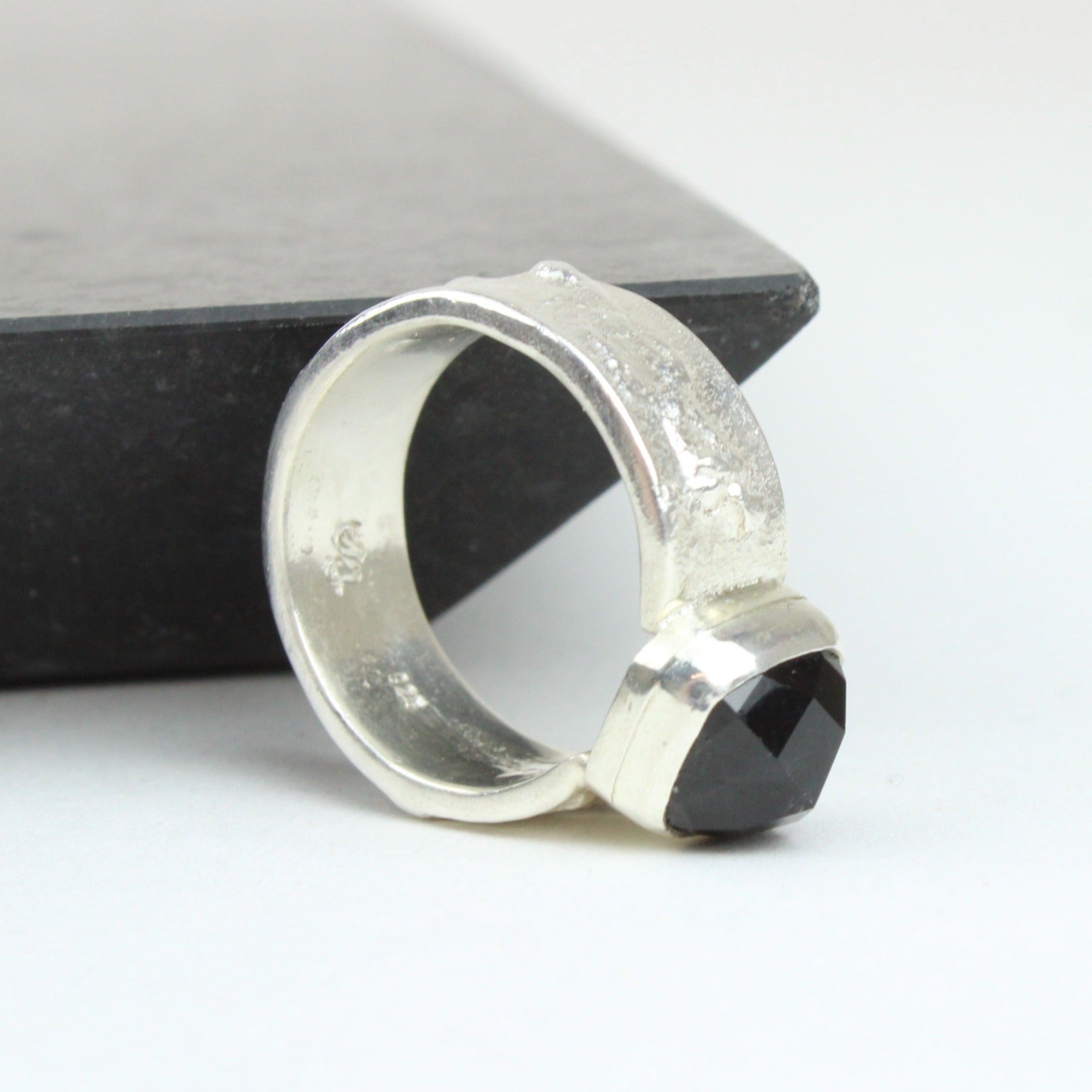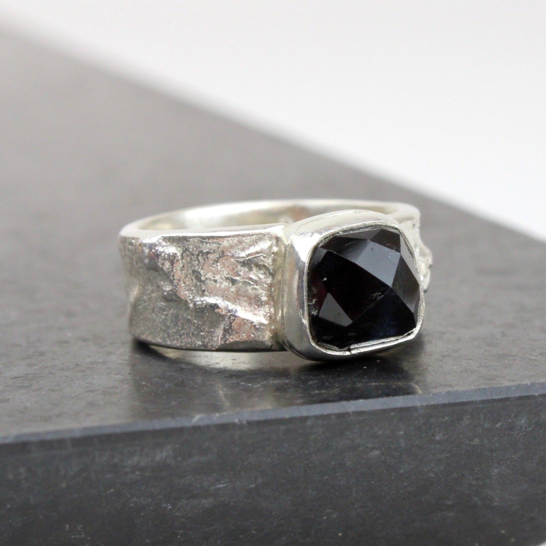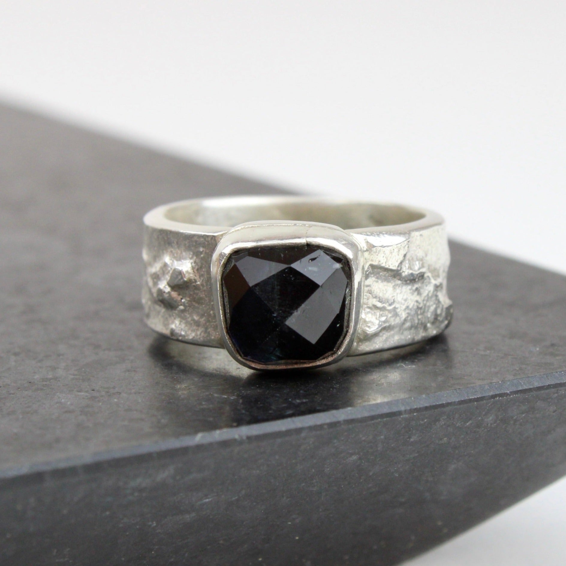 Trapezoid bi-colour ink blue rose cut tourmaline sterling silver ring