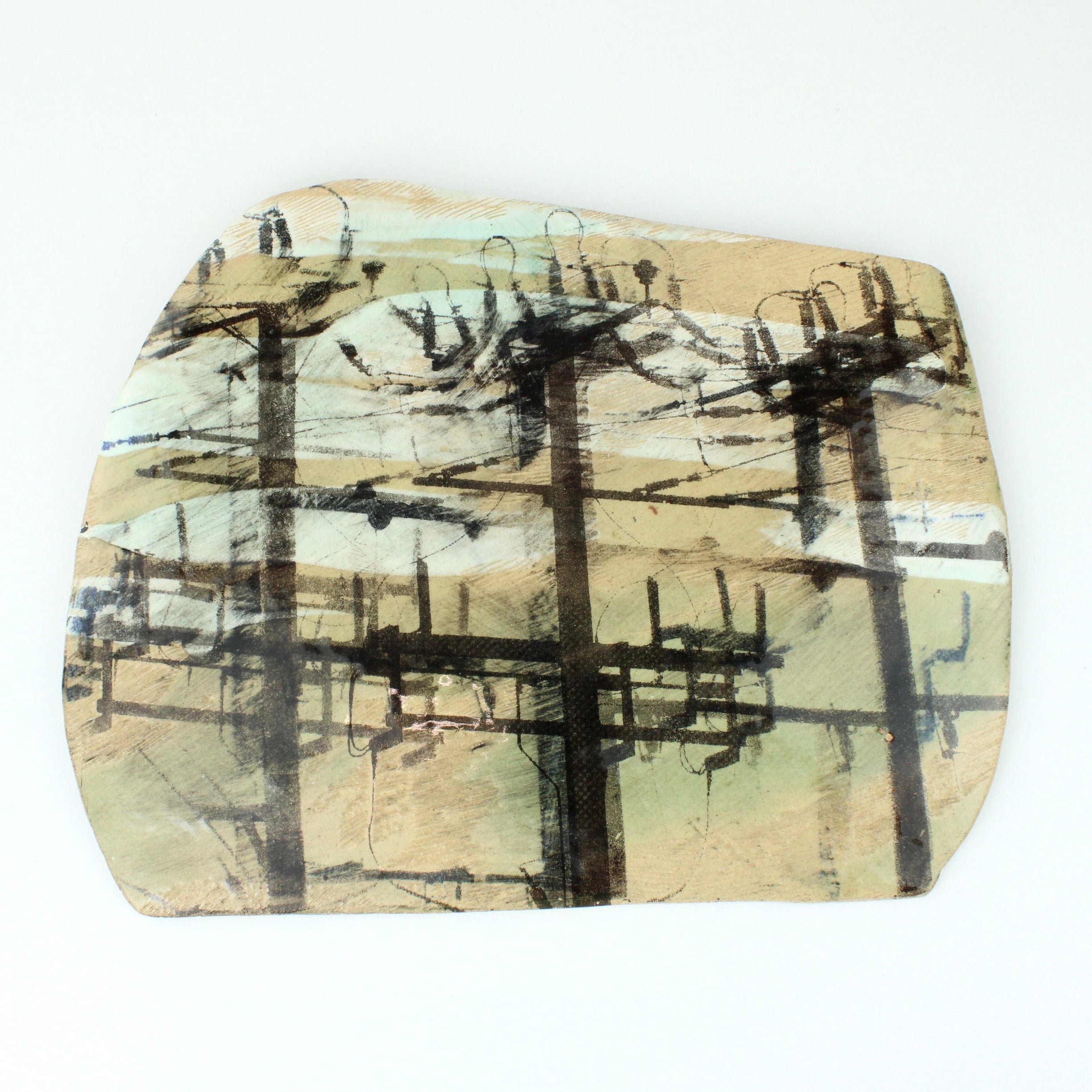 Kate McLean's collection of photographic and drawn ceramic forms create a dynamic tension between the organic nature of clay and the graphic systems layered upon it. Kate’s work invites viewers to consider how memory, place, and visual language imprint themselves onto the material world. In these clustered pieces, the traces of human gesture, printed image, and earthy form coexist, offering a quiet but compelling meditation on how we read, carry, and reinterpret the marks of everyday life.