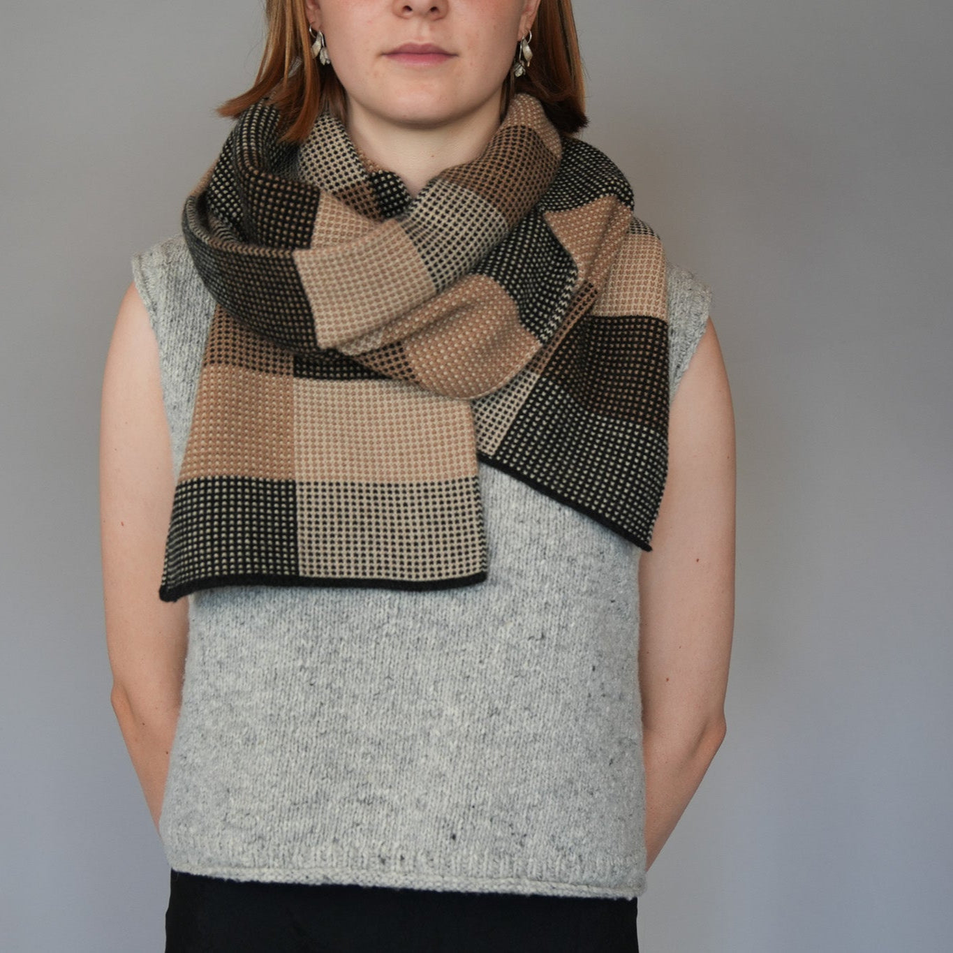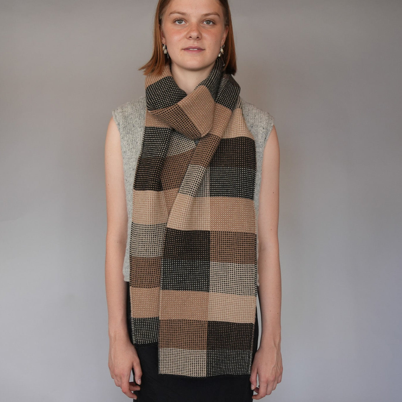 Waitaha (Canterbury) is well known for its productive plains. The chequered pattern the many paddocks make when viewed from the sky inspired this slip-stitch pattern. This scarf can be loop once or twice round the neck.