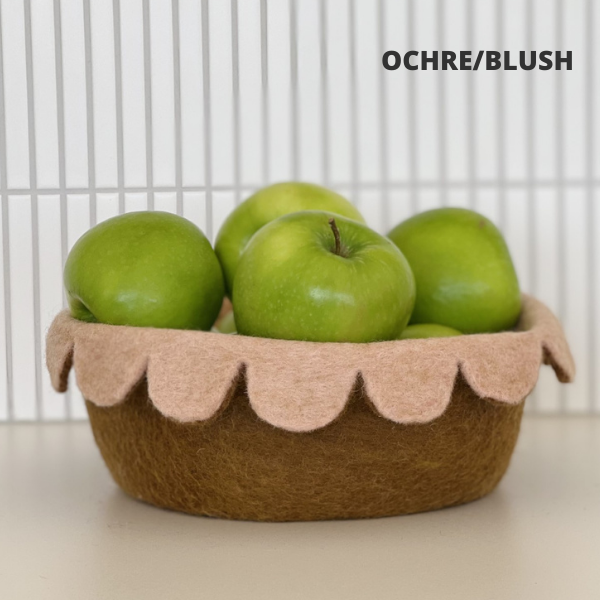 Handmade in Nepal using 100% NZ wool and non-toxic dyes. A whimsical little storage box for little one's treasures.