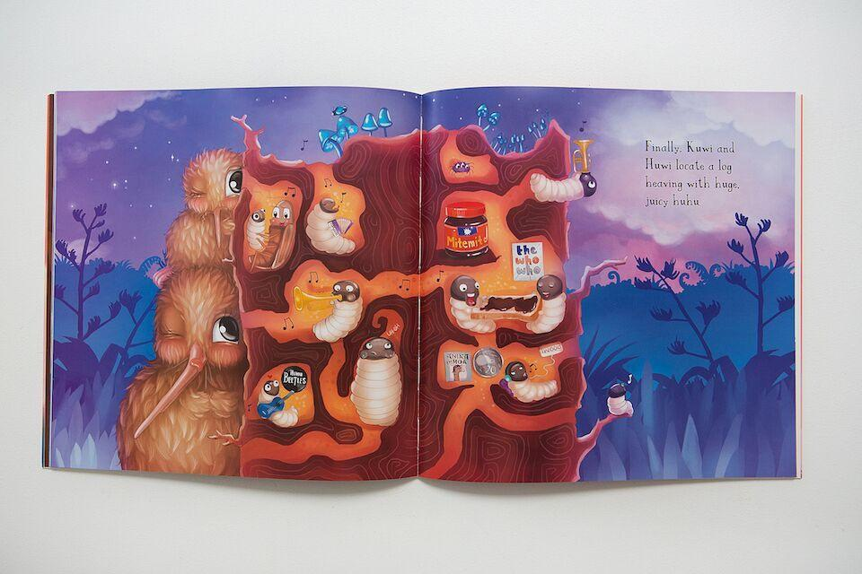 Kuwi the Kiwi decides to take Chick on his first huhu hunt. They could make huhu hangi, huhu hummus and huhu BBQ... Kuwi is an endangered brown kiwi and a new mum with a very fussy chick. Will she ever find Chick any huhu to eat?