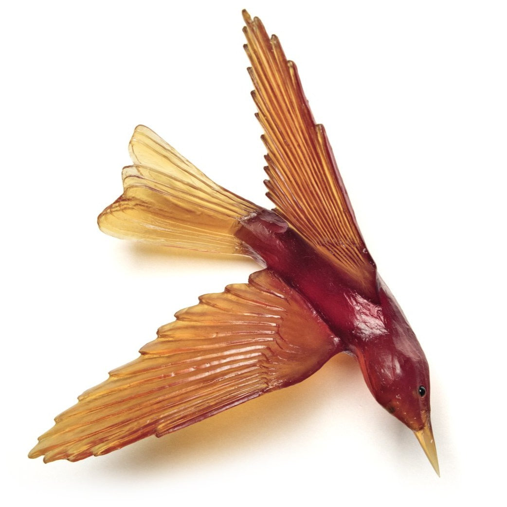 Using the lost wax casting method this wall mounted glass Bellbird is set with a screw fitting ready to fit into any wall. Wall anchor is required.