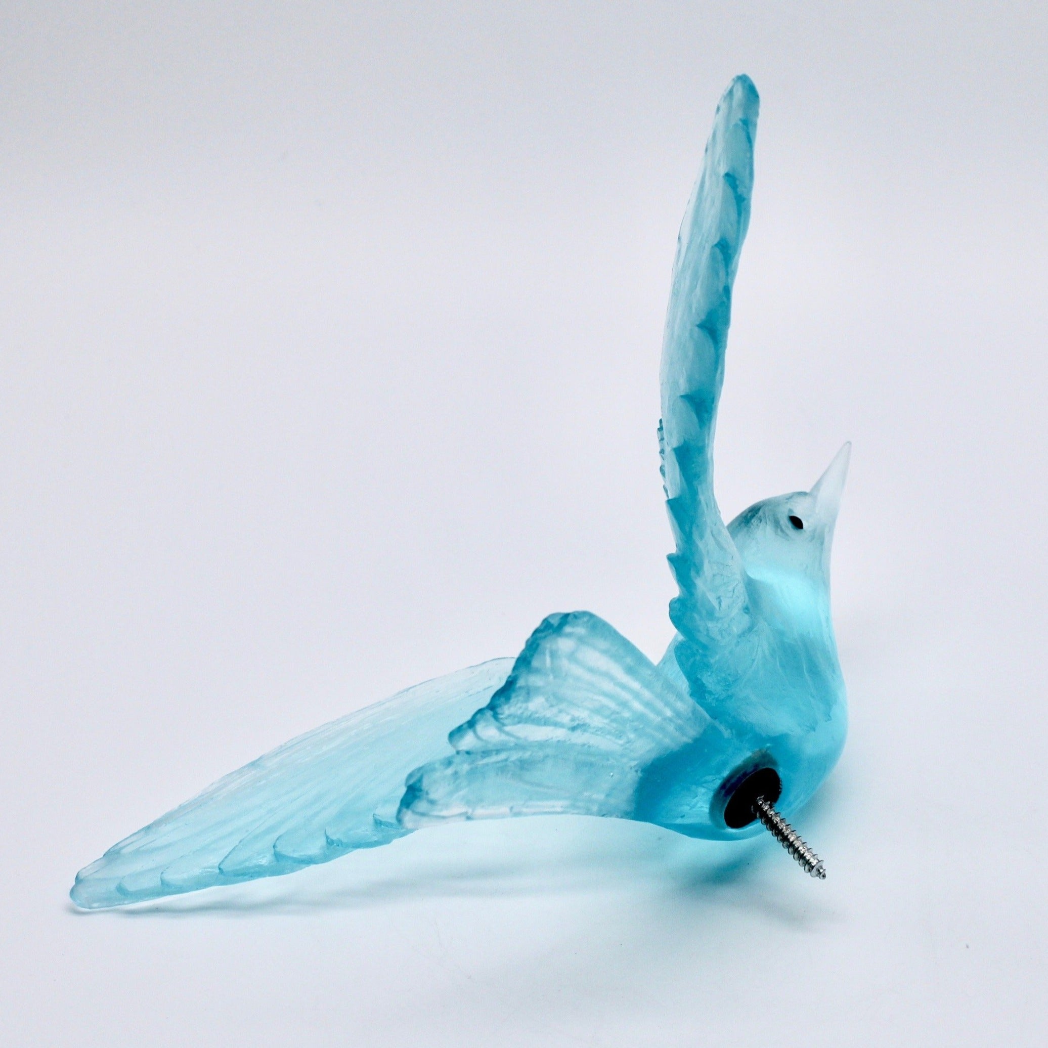 Using the lost wax casting method this wall mounted glass Bellbird is set with a screw fitting ready to fit into any wall. Wall anchor is required.