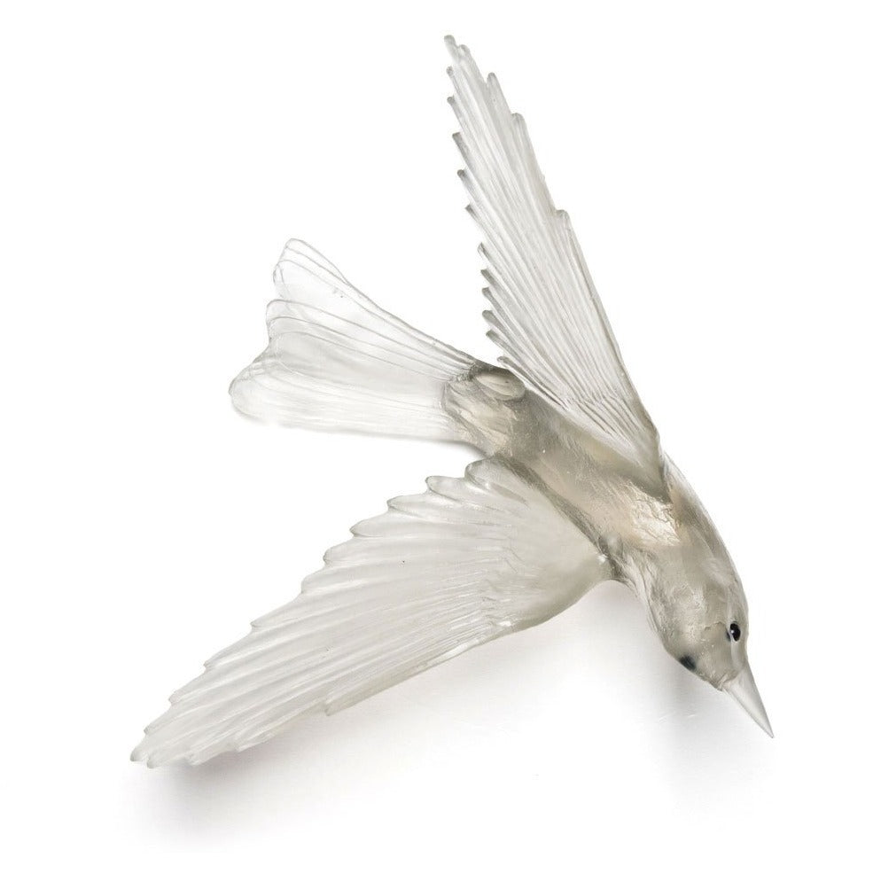 Using the lost wax casting method this wall mounted glass Bellbird is set with a screw fitting ready to fit into any wall. Wall anchor is required.