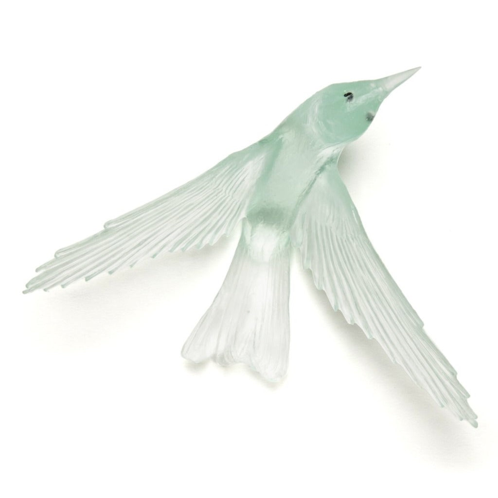 Using the lost wax casting method this wall mounted glass Bellbird is set with a screw fitting ready to fit into any wall. Wall anchor is required.