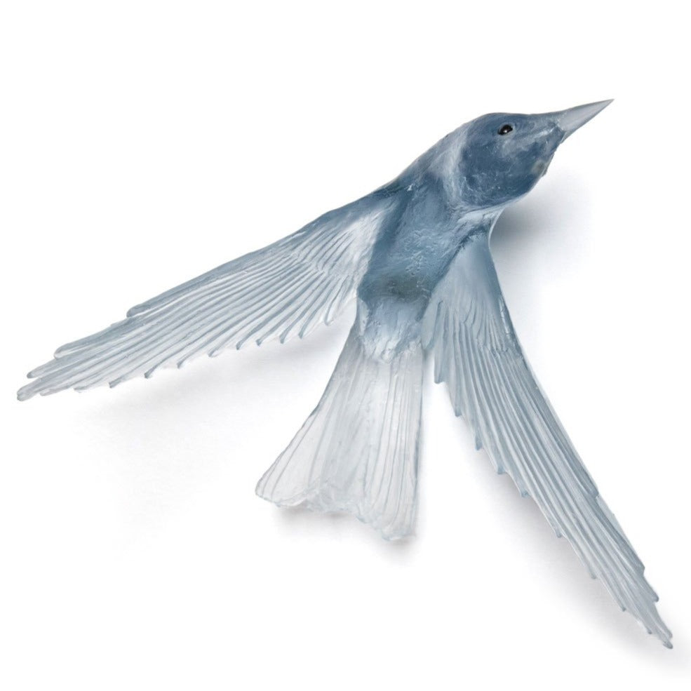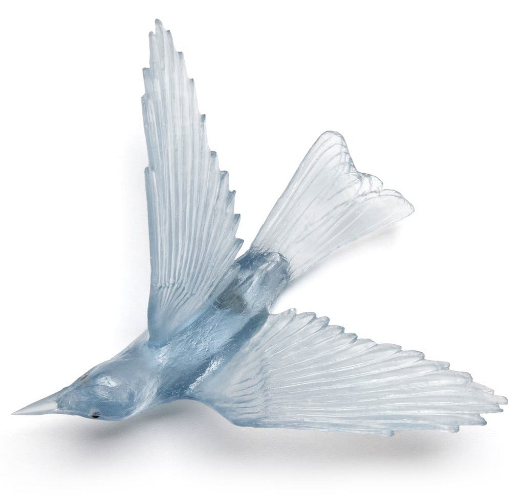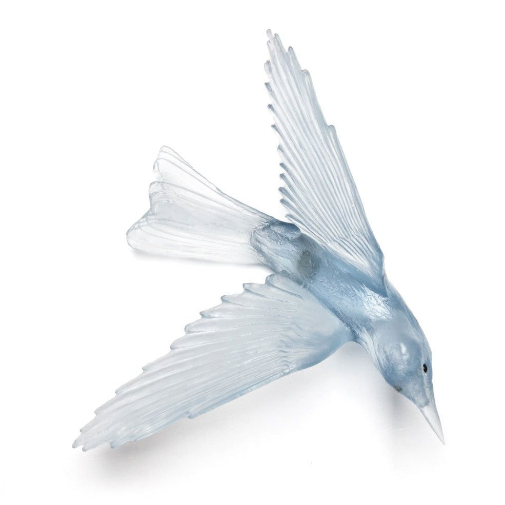 Using the lost wax casting method this wall mounted glass Bellbird is set with a screw fitting ready to fit into any wall. Wall anchor is required.