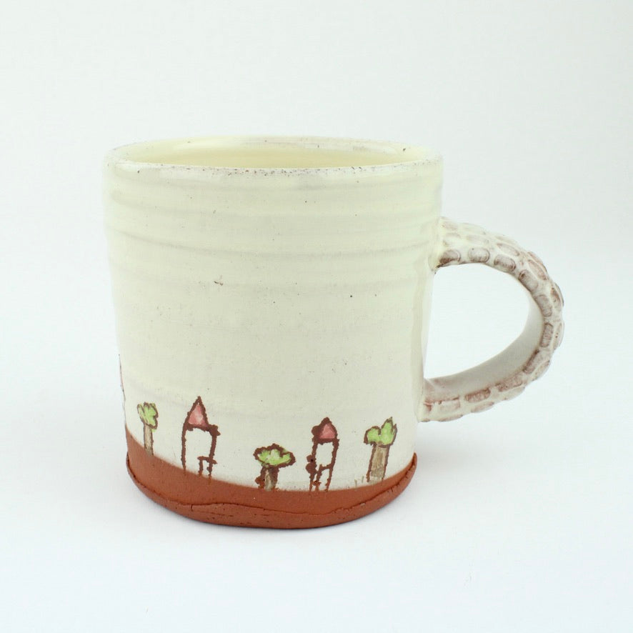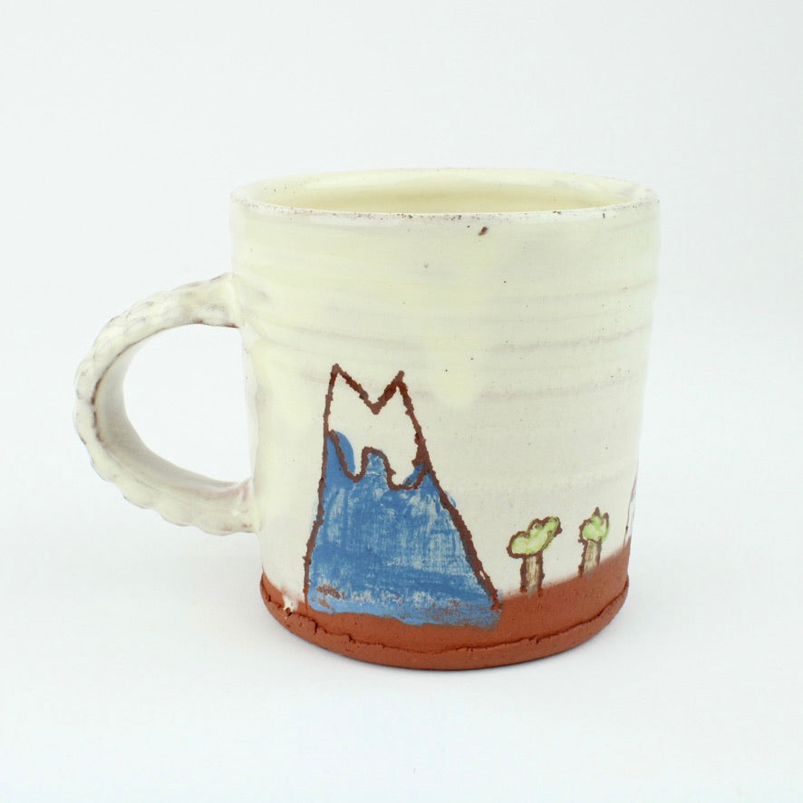 Charlie Maseyk delights in the joy his cups bring to people. He has been exhibiting his cups at Kina since 2019, a journey that began when his Granny proudly purchased his very first hand-built cup, crafted at just four years old. In 2020, his Nanni became the proud owner of his second creation, cementing a family tradition of celebrating Charlie's artistry. Since 2021, Charlie has been collaborating with his potter dad, Paul Maseyk, adding his unique sgraffito drawings to his father's expertly crafted cups.