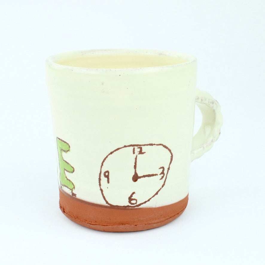 Charlie Maseyk delights in the joy his cups bring to people. He has been exhibiting his cups at Kina since 2019, a journey that began when his Granny proudly purchased his very first hand-built cup, crafted at just four years old. In 2020, his Nanni became the proud owner of his second creation, cementing a family tradition of celebrating Charlie's artistry. Since 2021, Charlie has been collaborating with his potter dad, Paul Maseyk, adding his unique sgraffito drawings to his father's expertly crafted cups.