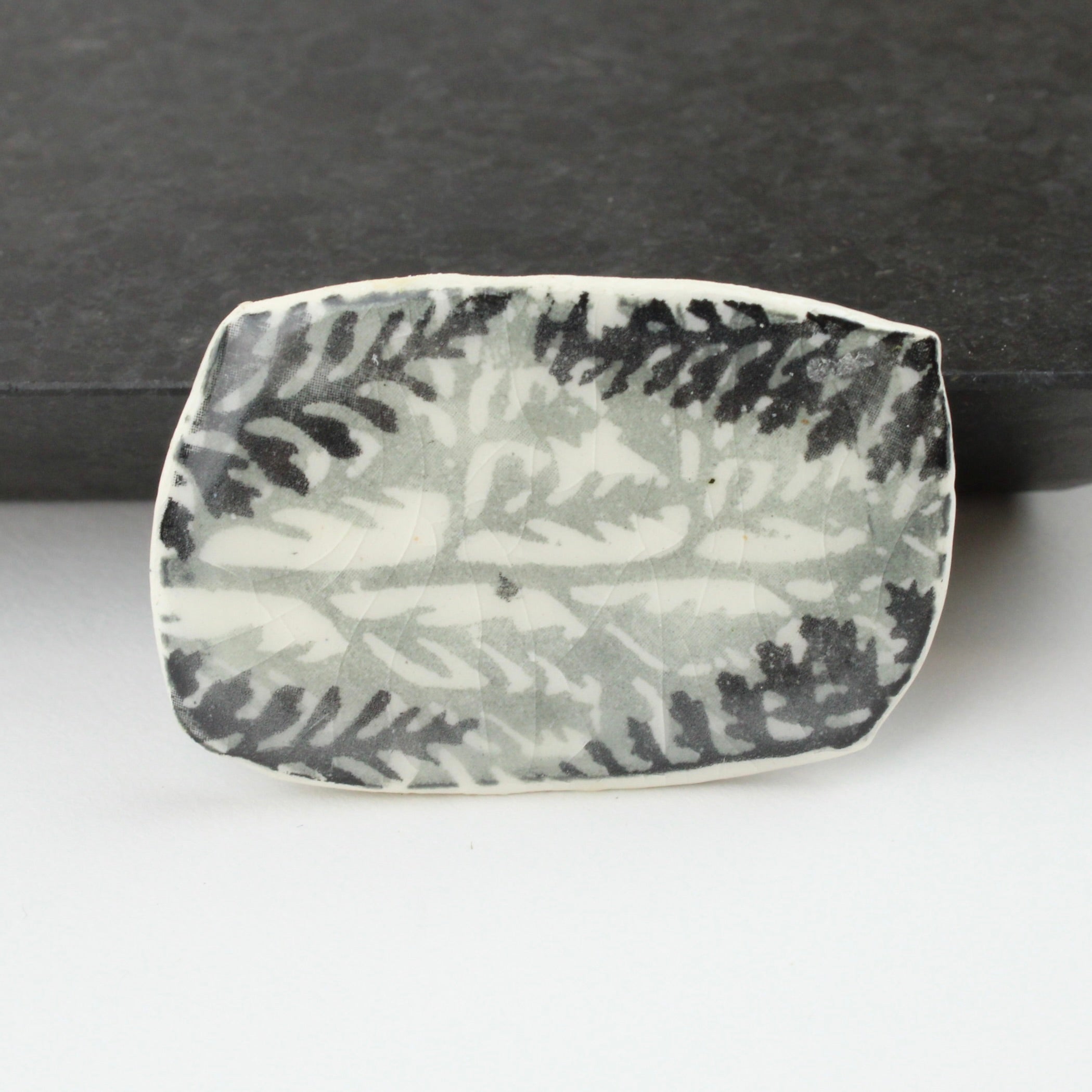 Kate McLean integrates her passion for photography and ceramics to create brooches that explore the intricate details of everyday objects, abstract forms, and screen-printed imagery.
