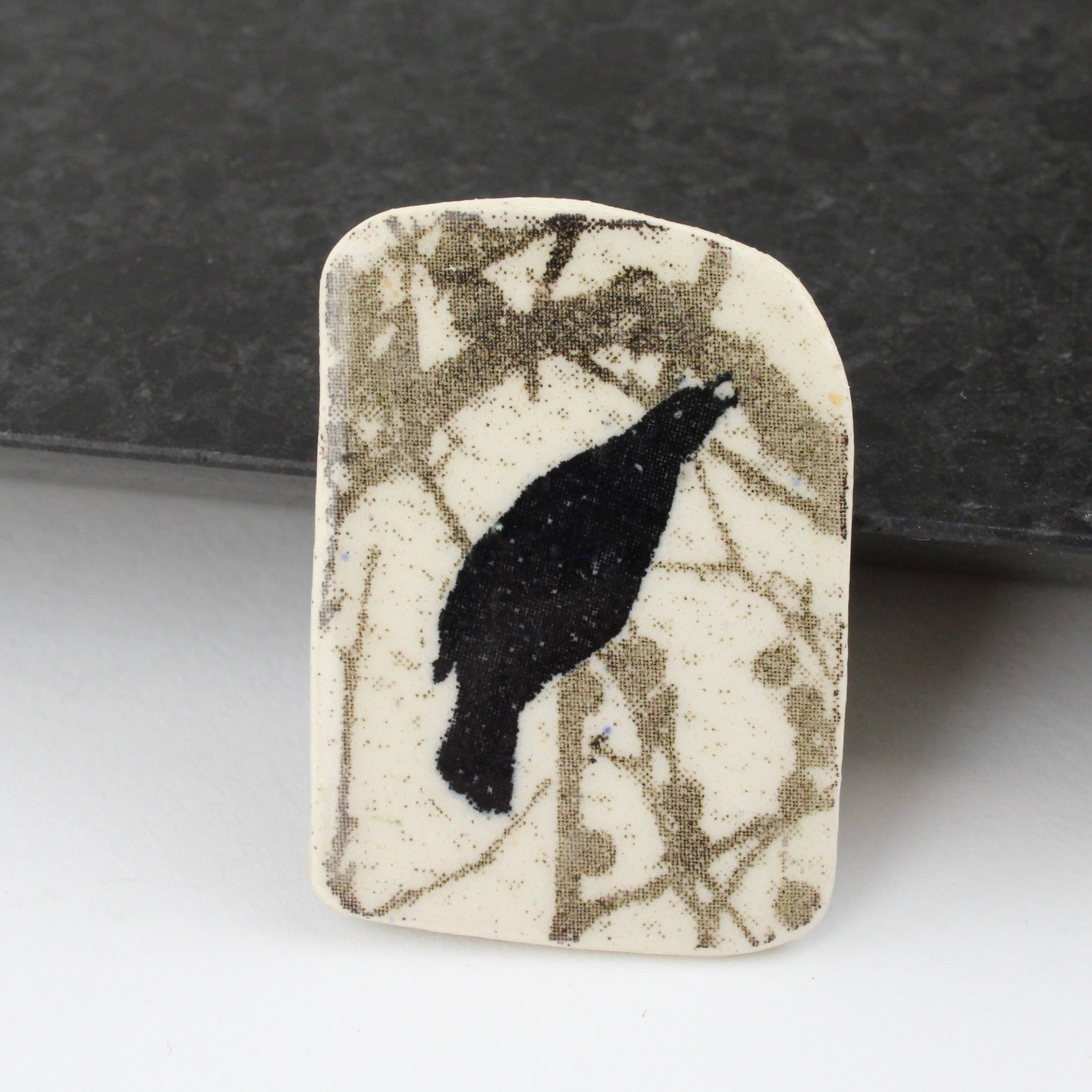 Ceramic screenprinted brooch