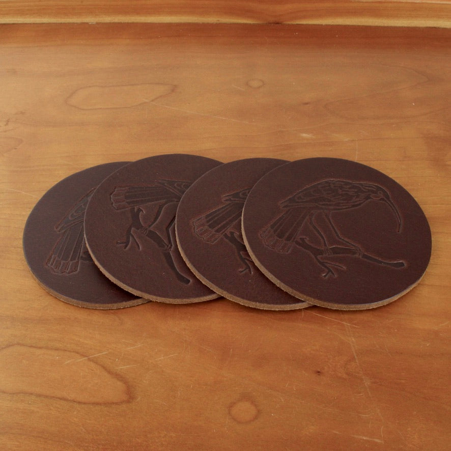 Set of four full grain leather coasters offers everyday function with timeless character. No layers, no fillers—just authentic leather that’s built to last and absorbs the marks of celebration over time, developing a warm patina.