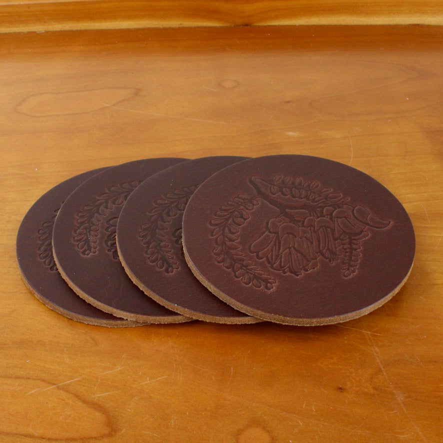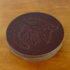 Set of four full grain leather coasters offers everyday function with timeless character. No layers, no fillers—just authentic leather that’s built to last and absorbs the marks of celebration over time, developing a warm patina.
