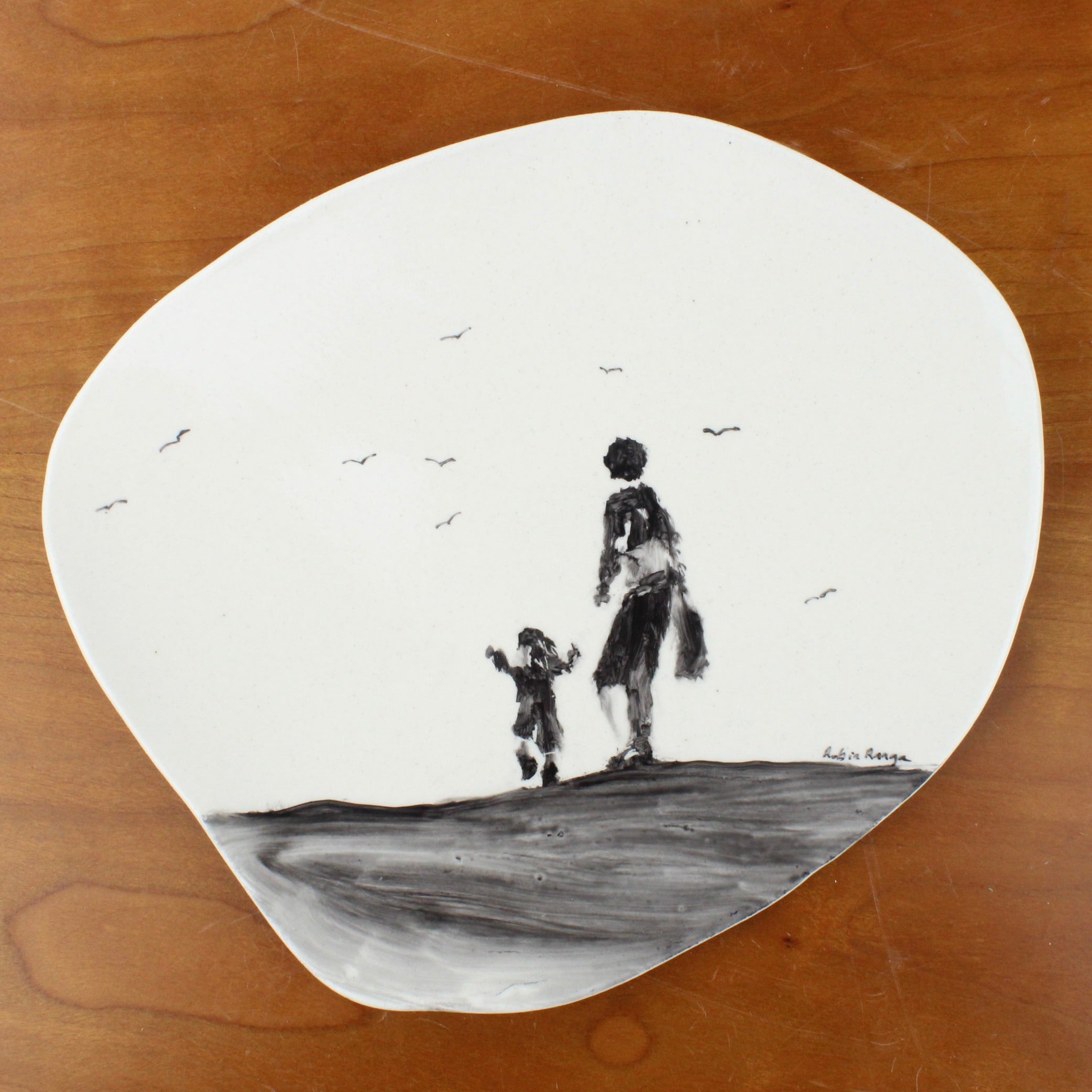 Hand painted ceramic wall plaques are silhouette "snaps of time" that each tell their unique story.