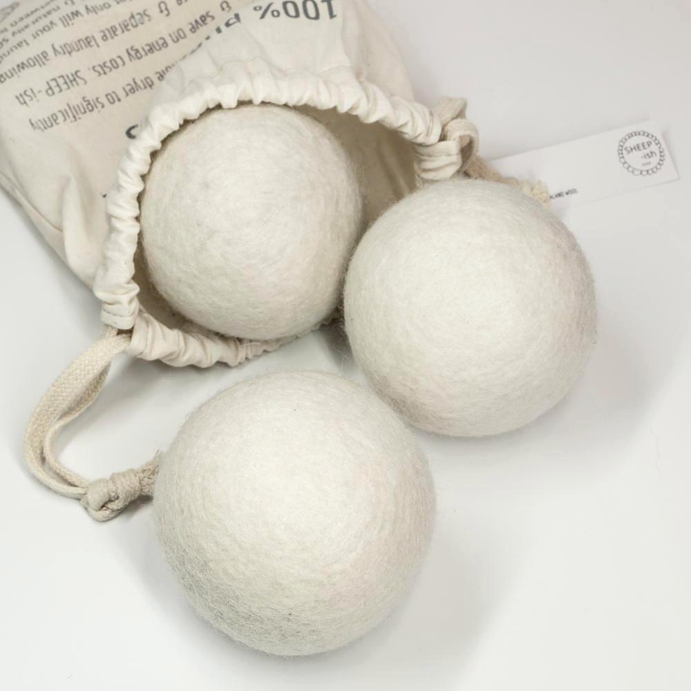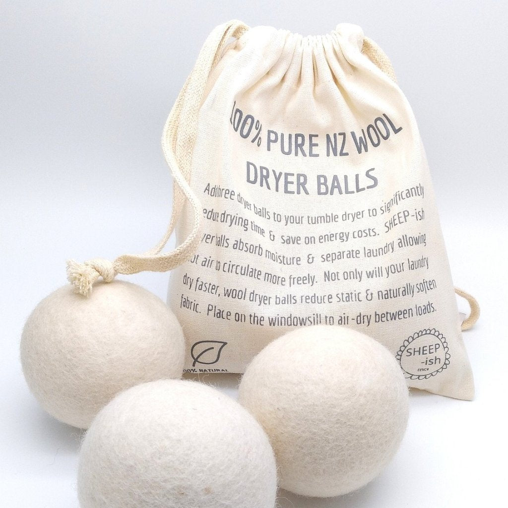 Add three dryer balls to your tumble dryer to significantly reduce drying time & save on energy costs. SHEEP-ish dryer balls absorb moisture & separate laundry allowing hot air to circulate more freely. Not only will your laundry dry faster, wool dryer balls reduce static & naturally soften fabric. Place on the windowsill to air-dry between loads.