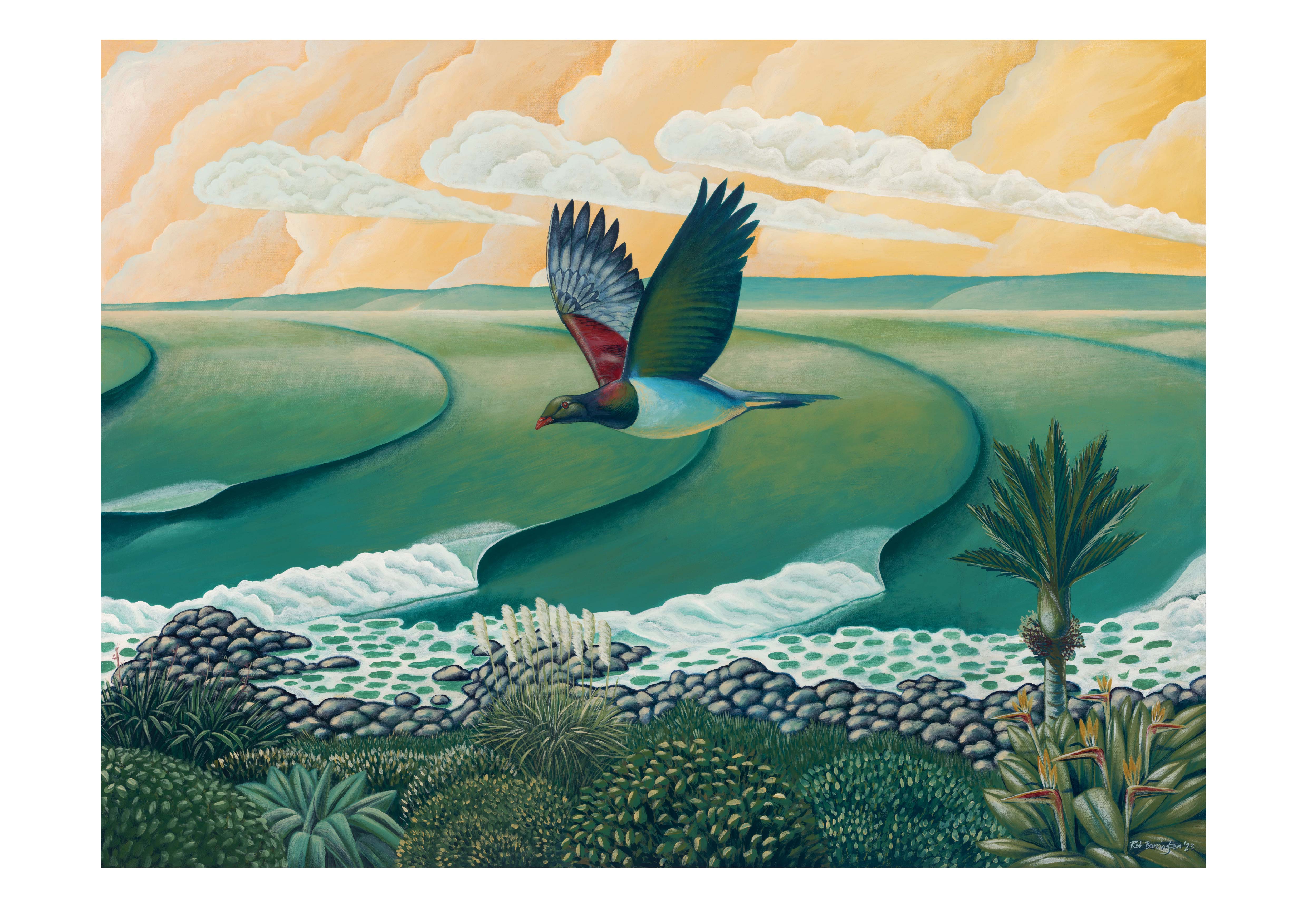 Rob Barrington is an established New Zealand artist with a career spanning over three decades in the sign and design industry. His extensive experience includes collaborations with illustrators and mural artists, creating everything from intricate magazine cartoons to large-scale murals across the country. Throughout his commercial career, Rob continued to refine his personal artistic practice, exploring a variety of media and techniques.
