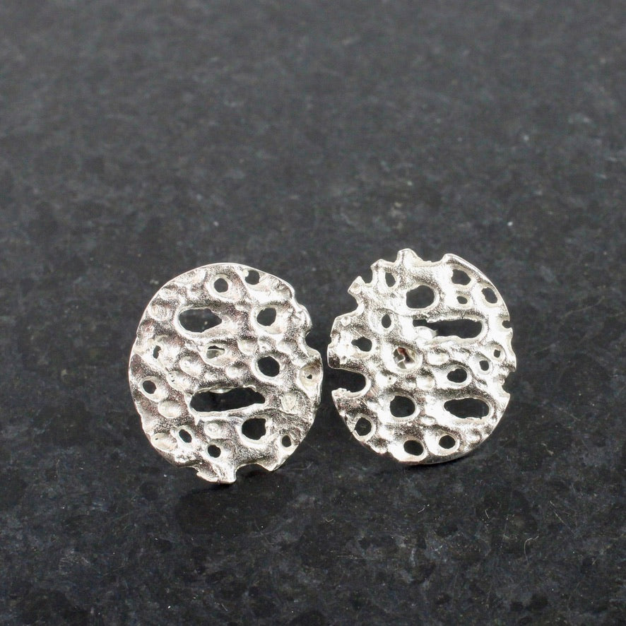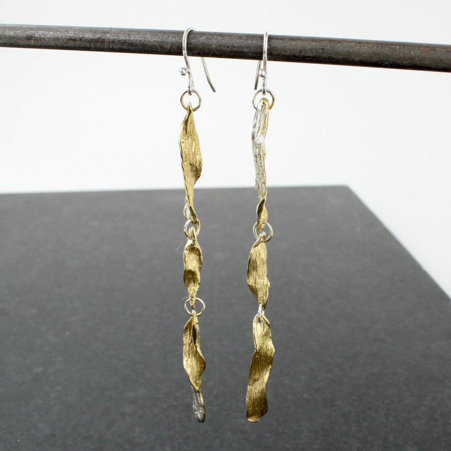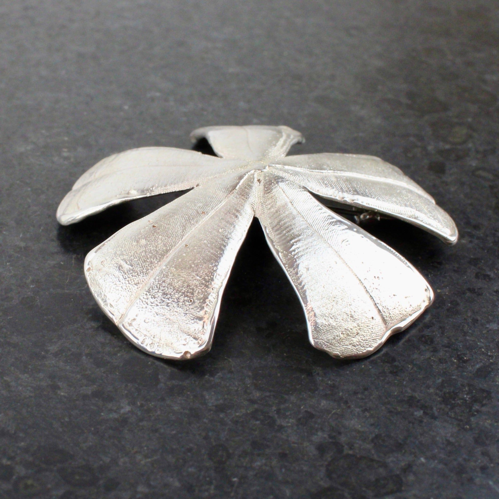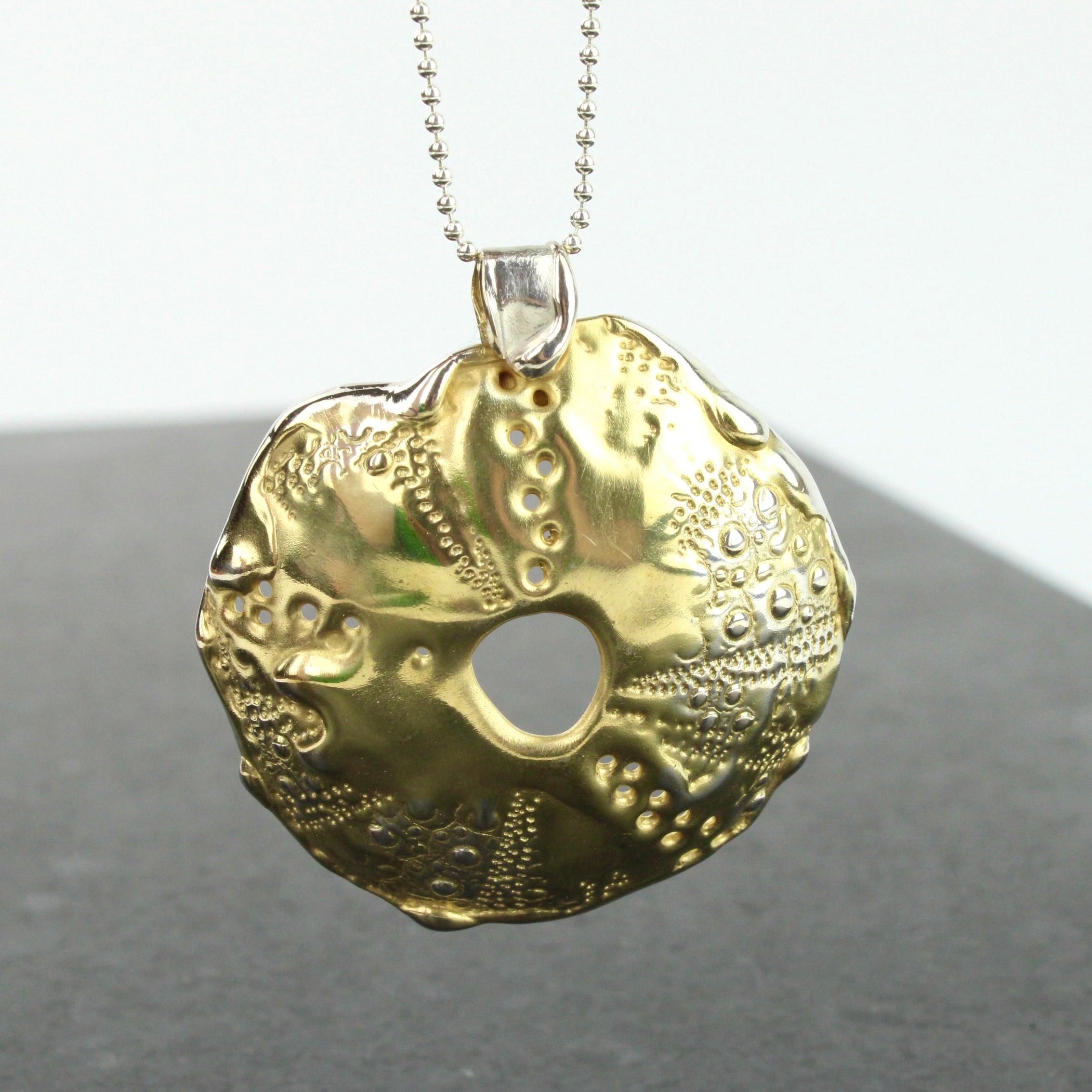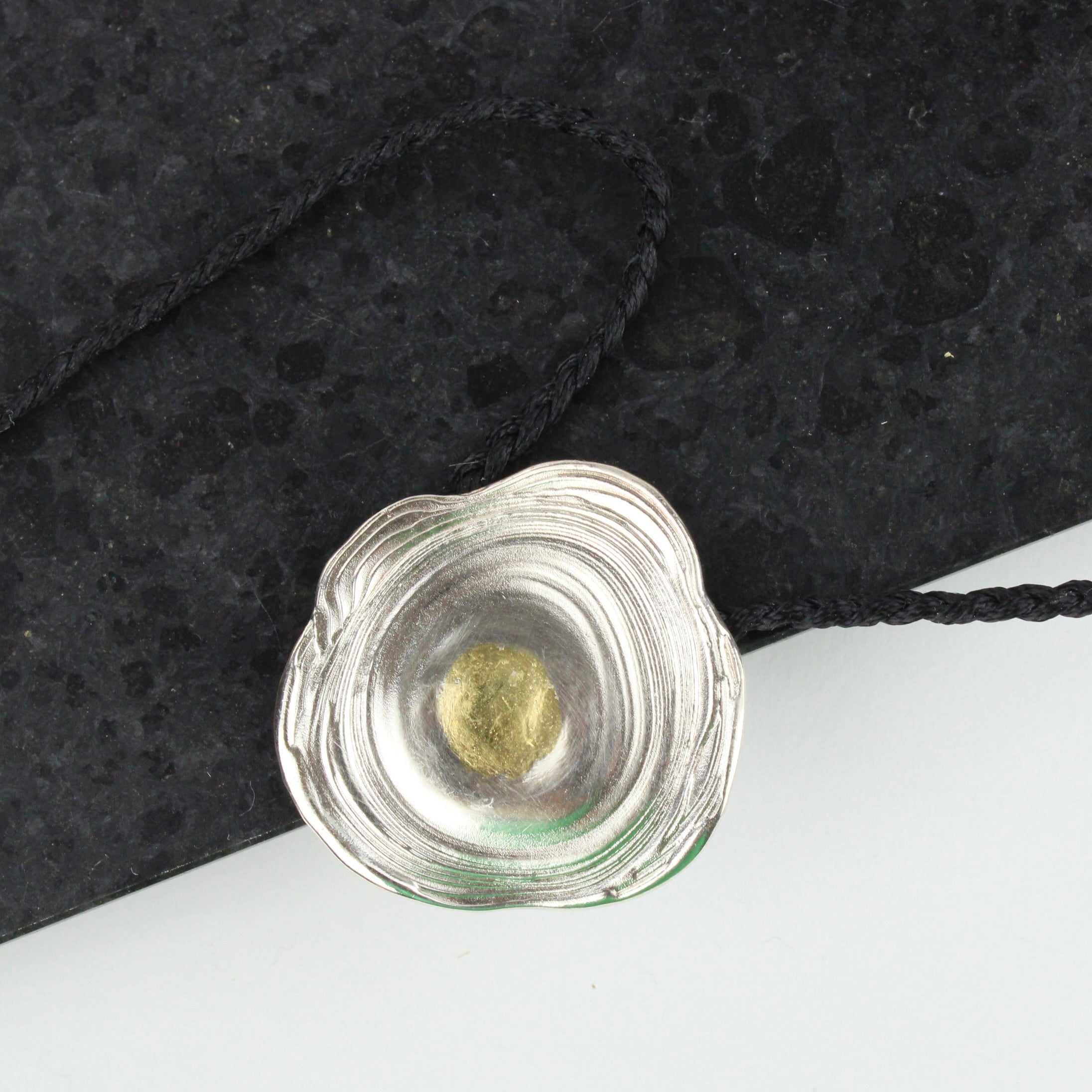 Adrienne works mainly with sterling silver because it responds well to the casting process, but uses the Keum Boo gilding process to add 24ct gold to some pieces and electroplating to add 14ct gold vermeil to others.