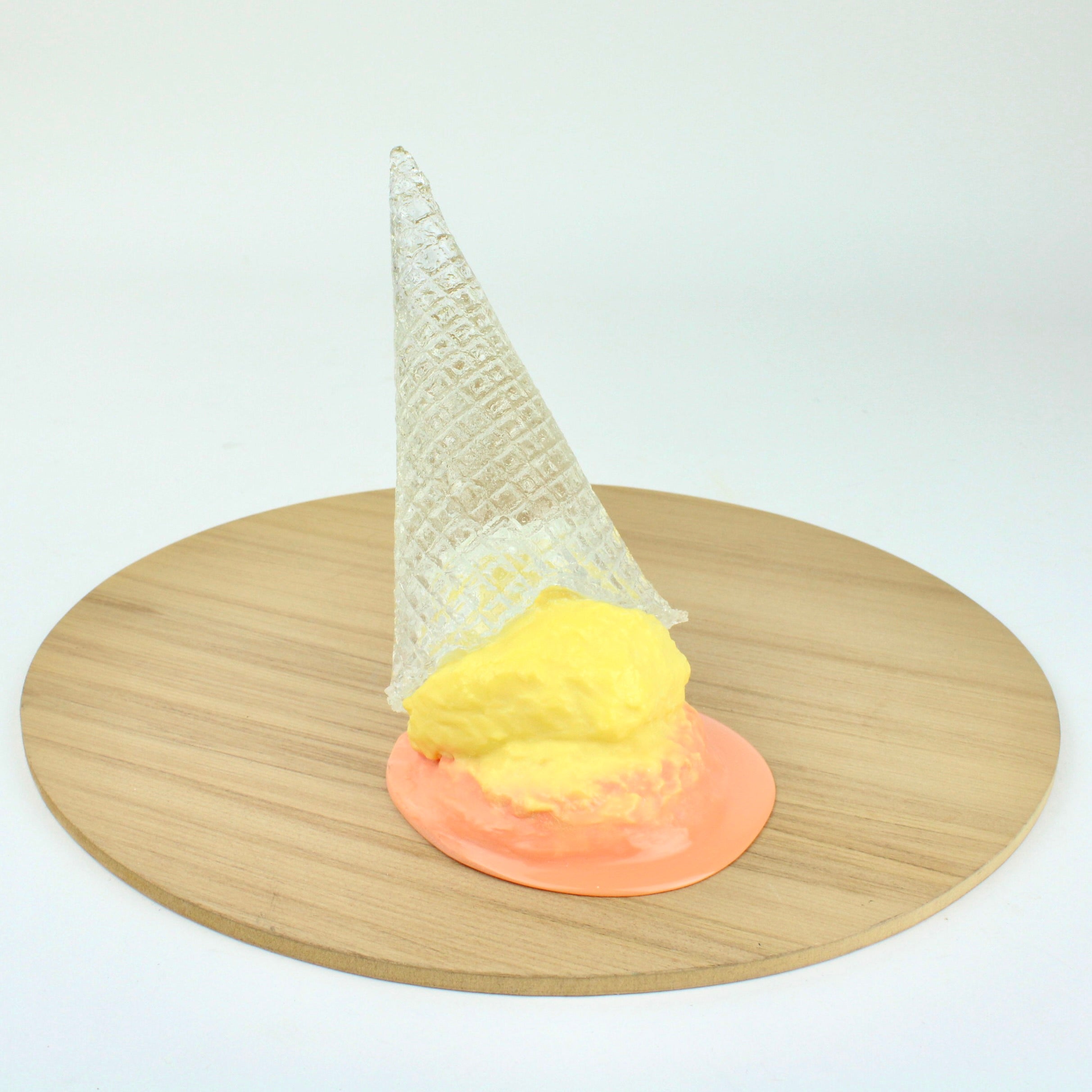 David Thomas’s sculptural works explore the playful and poetic intersections between nostalgia, consumer culture, and contemporary art. Working primarily in resin, Thomas transforms familiar forms, often ice creams, into luminous, tactile objects that invite delight.
