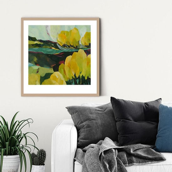 Holly's landscape paintings are inspired by memories real and imagined and by the places that hold special meaning to her. Holly's work has been greatly influenced by the geometry, simple forms and patterns that were explored during her studies in fabric design and screen printing. Along with years of working as a freelance editorial illustrator, she has also had some great opportunities to design and screen print textiles for unique bespoke projects.