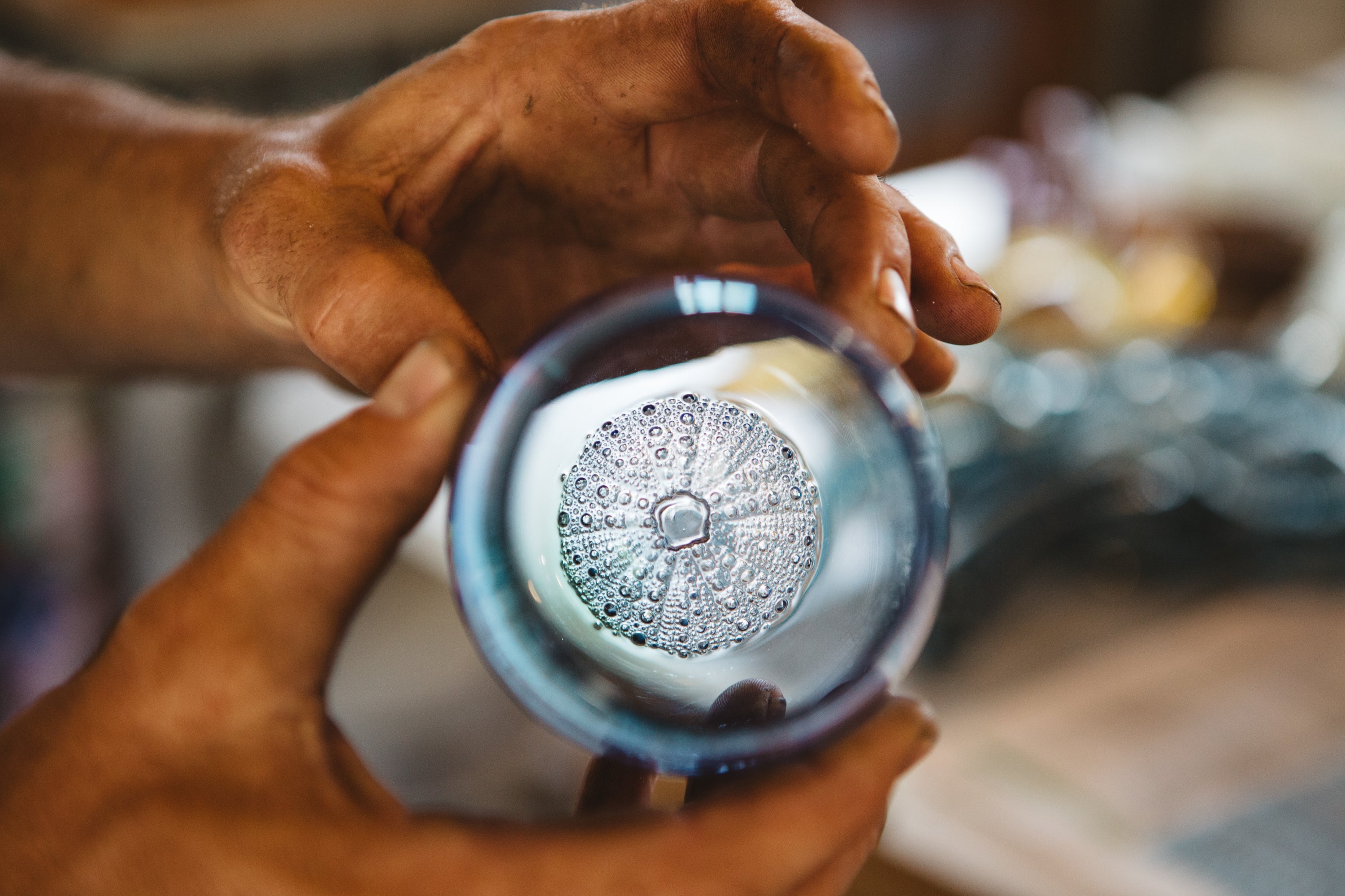 Justin draws on the natural fluidity of glass to echo the movement of the ocean, creating a dialogue between his love of the sea and his passion for hot glass. By working with the shapes the medium naturally wants to assume, he captures both its spontaneity and its connection to the natural world.