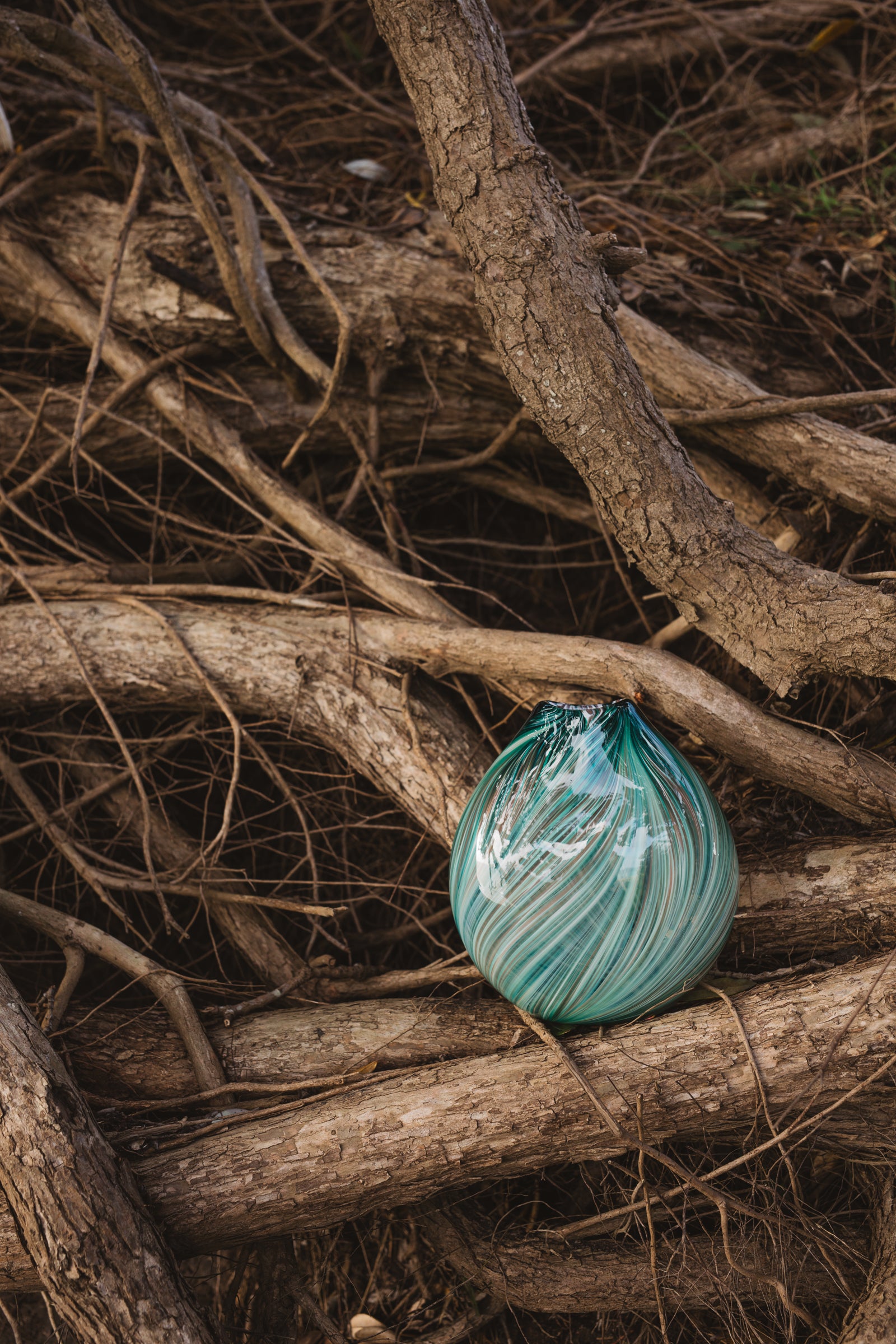 Justin Culina studied Glass Production and Design at UCOL, Whanganui, graduating in 2002. He worked with glass artists in New Zealand and abroad, developing a distinctive approach to ancient techniques such as cane roll ups, murine, incalmo, filigree and latticino. Returning to Whangarei, his rural surroundings and local beaches inspire his creations. Represented in galleries across New Zealand and in private collections worldwide, Justin is a member of the NZ Society of Artists in Glass and the International Glass Art Society. His work reflects a deep respect for both glass and the natural world.