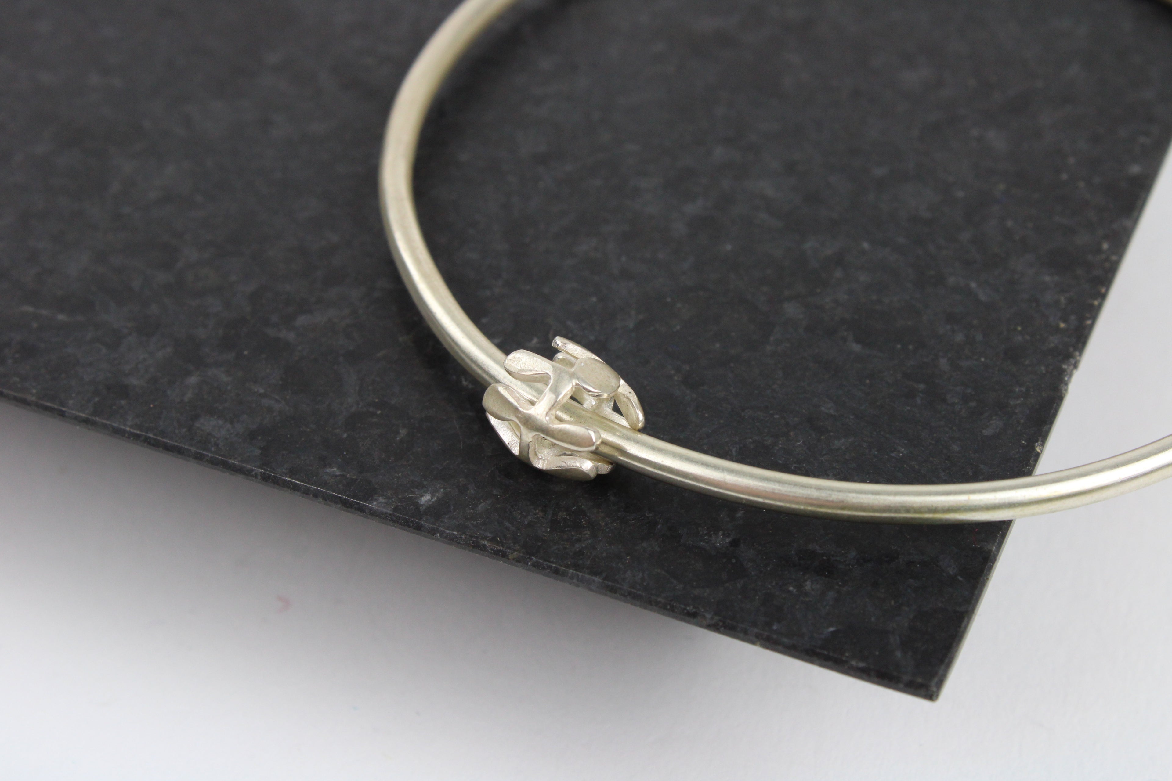 She enjoys the creative process of transforming simple metal into beautiful and fun pieces. Her work is inspired by nature and often features the ancient ginkgo leaf with its distinct texture and unique shape. This contrasts with her love for geometric forms and clear lines as demonstrated in her faceted pieces.